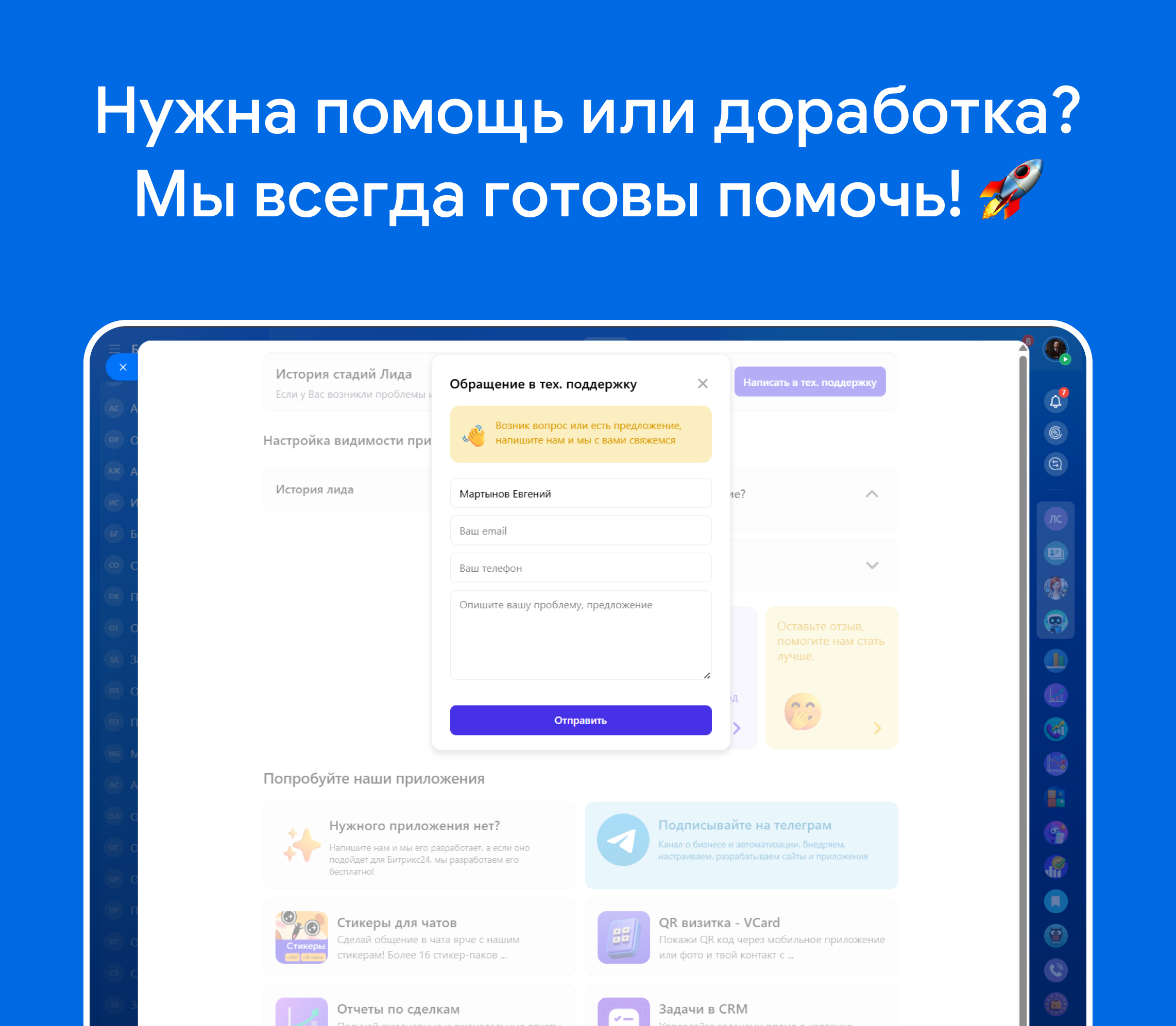 Если у вас возникнут вопросы или идеи для улучшения, вы можете легко связаться с нами через форму обратной связи внутри приложения. Мы всегда готовы помочь!
