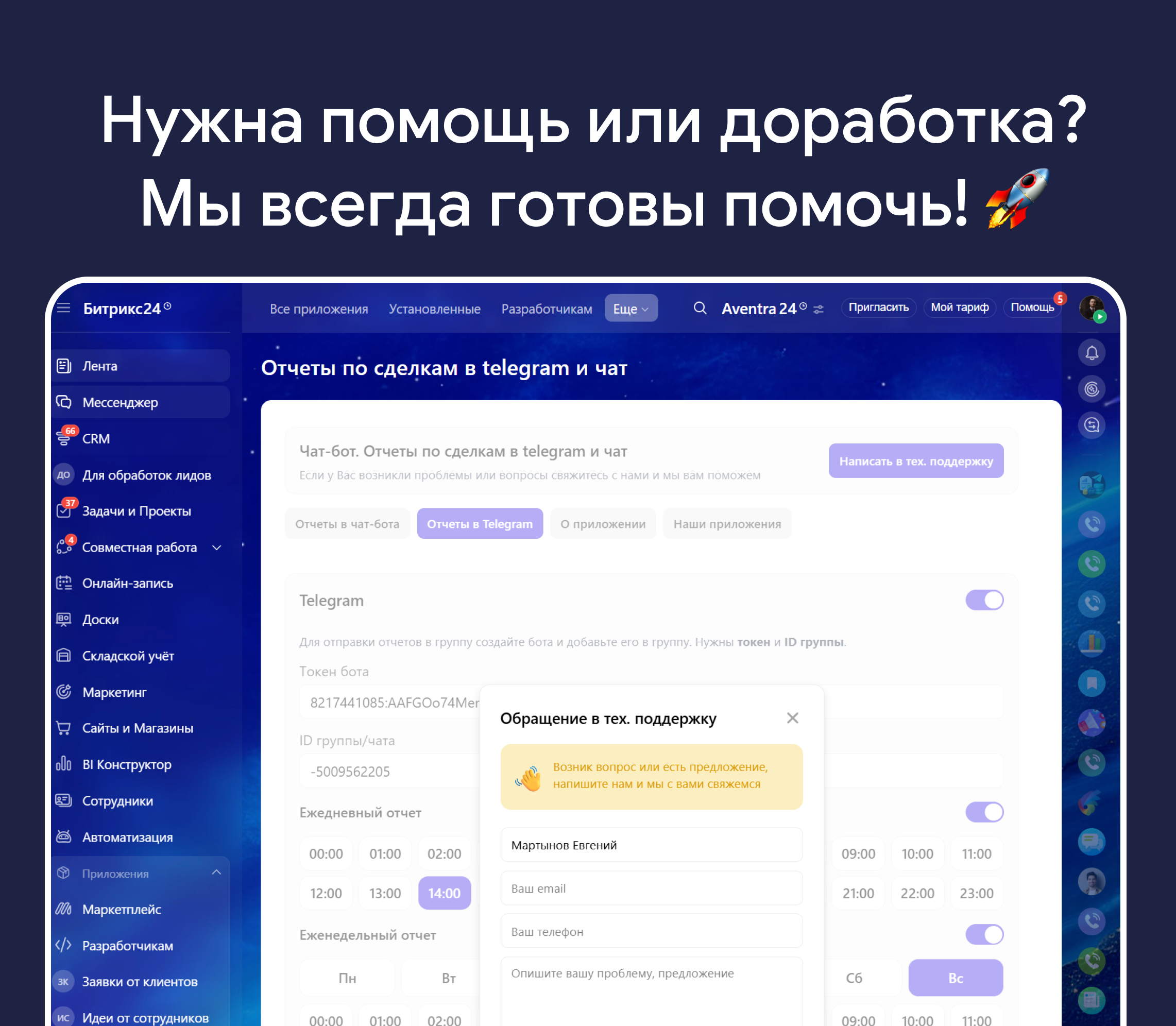 - Если что-то не получилось — напишите в поддержку в приложении, поможем настроить.
