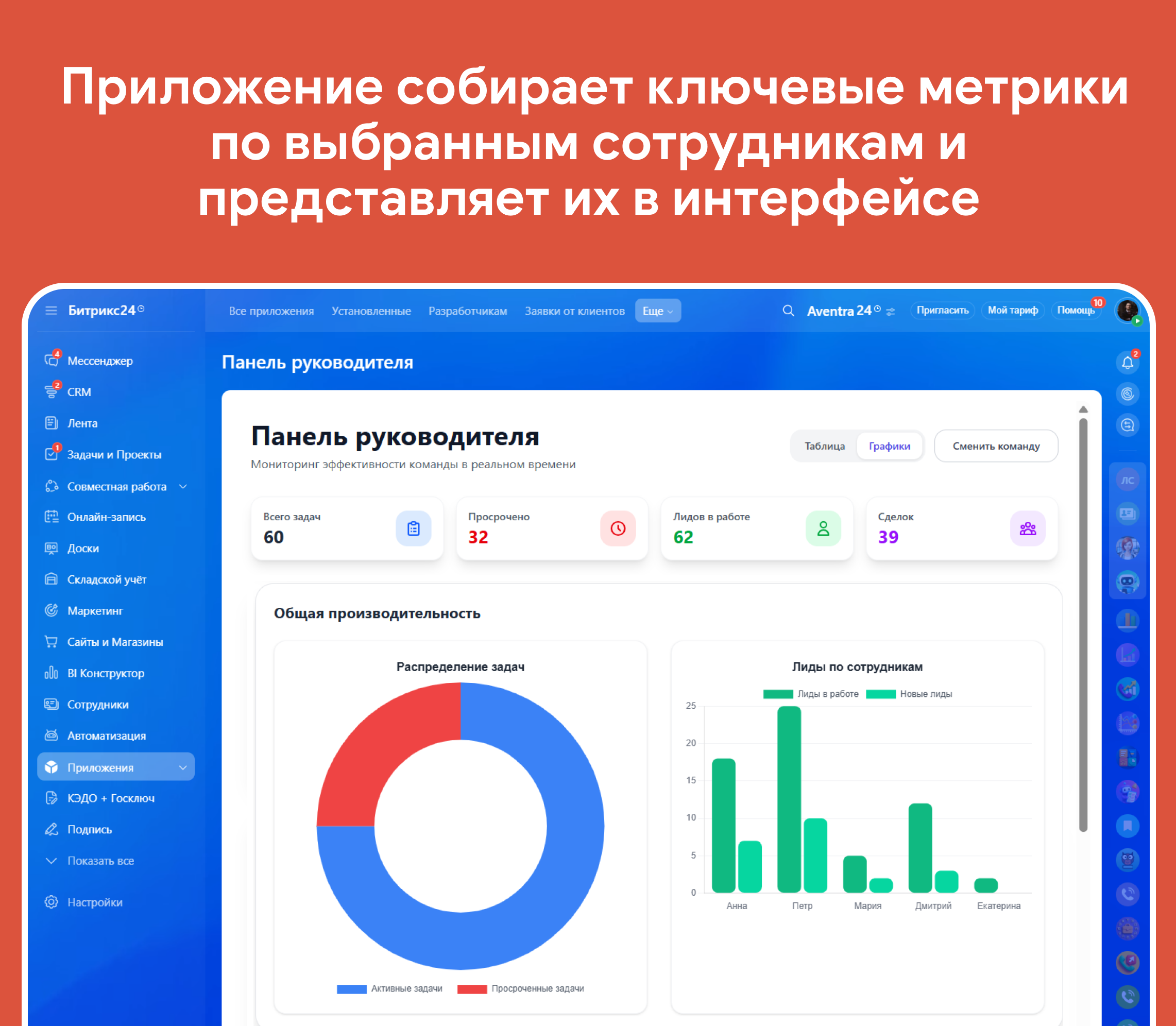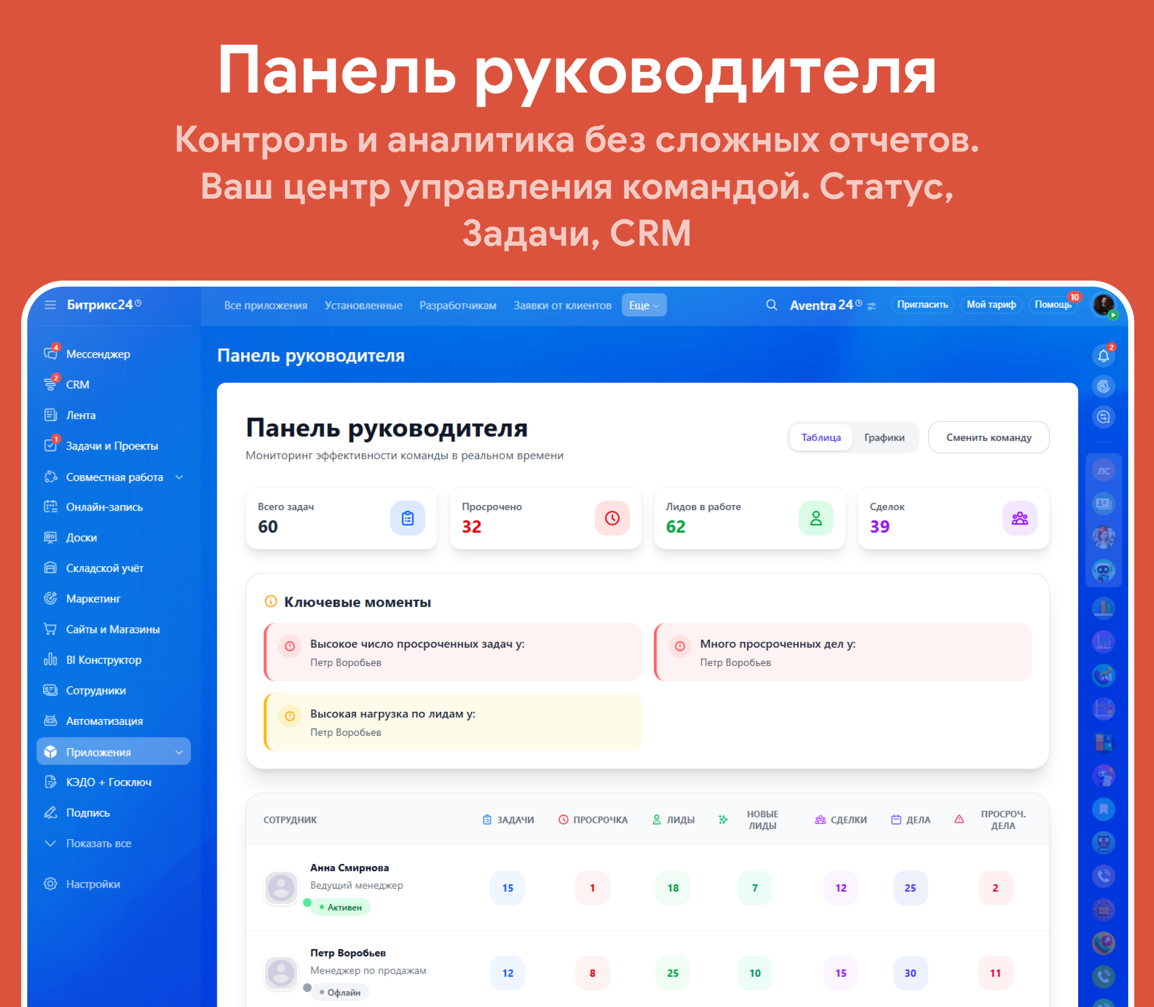 Контроль и аналитика без сложных отчетов. Ваш центр управления командой. Статус, Задачи, CRM.