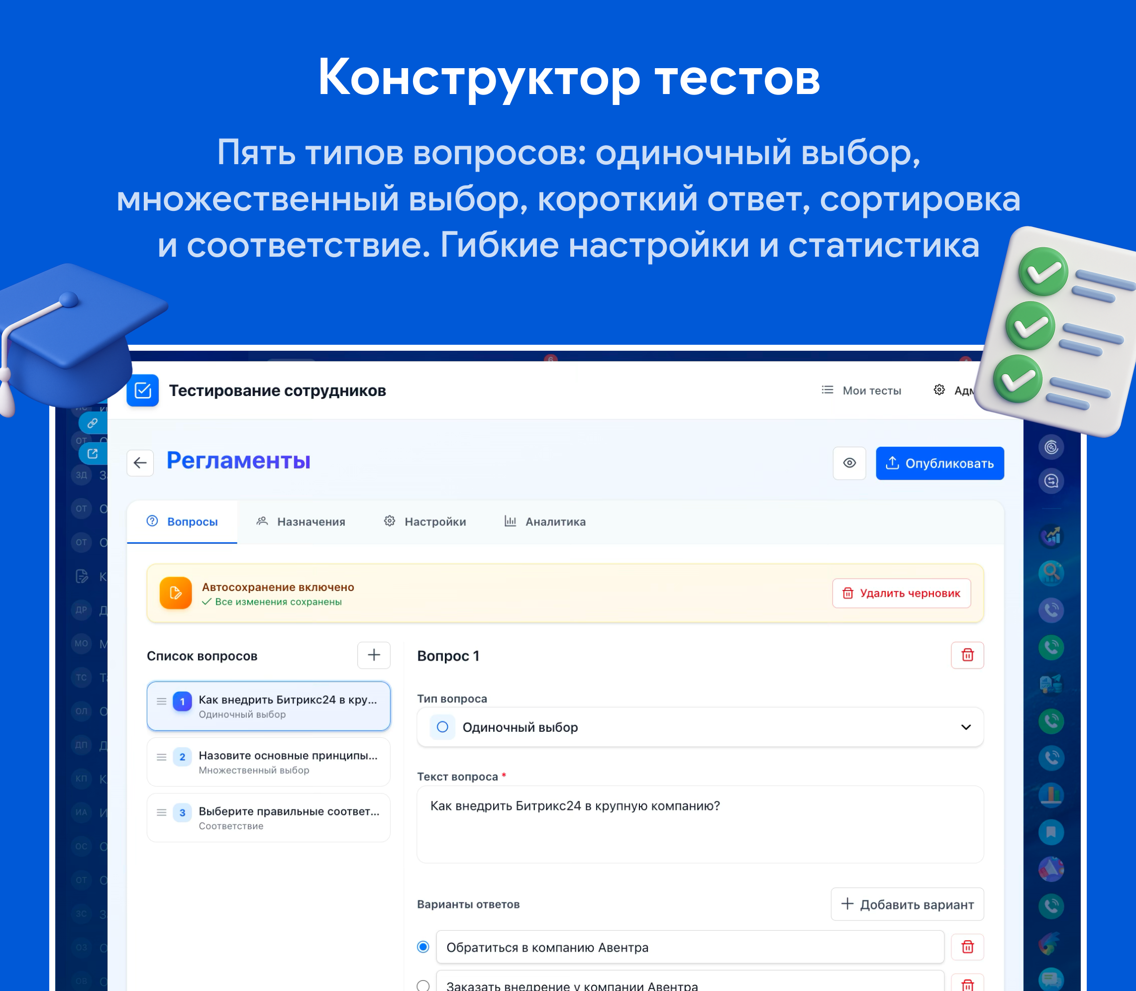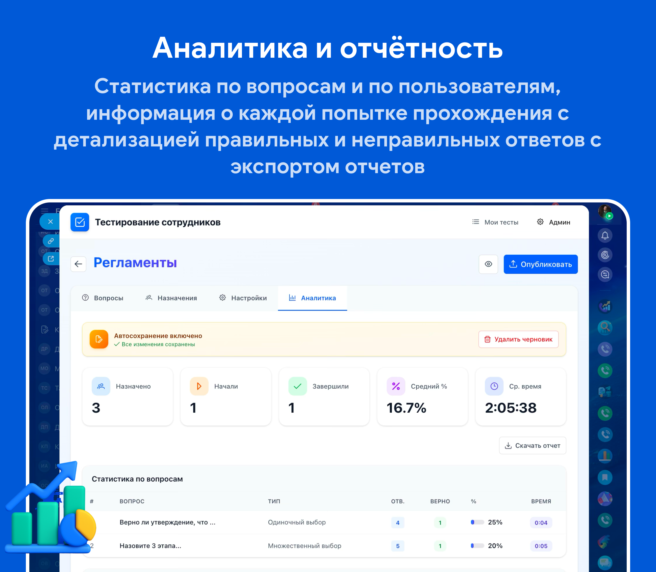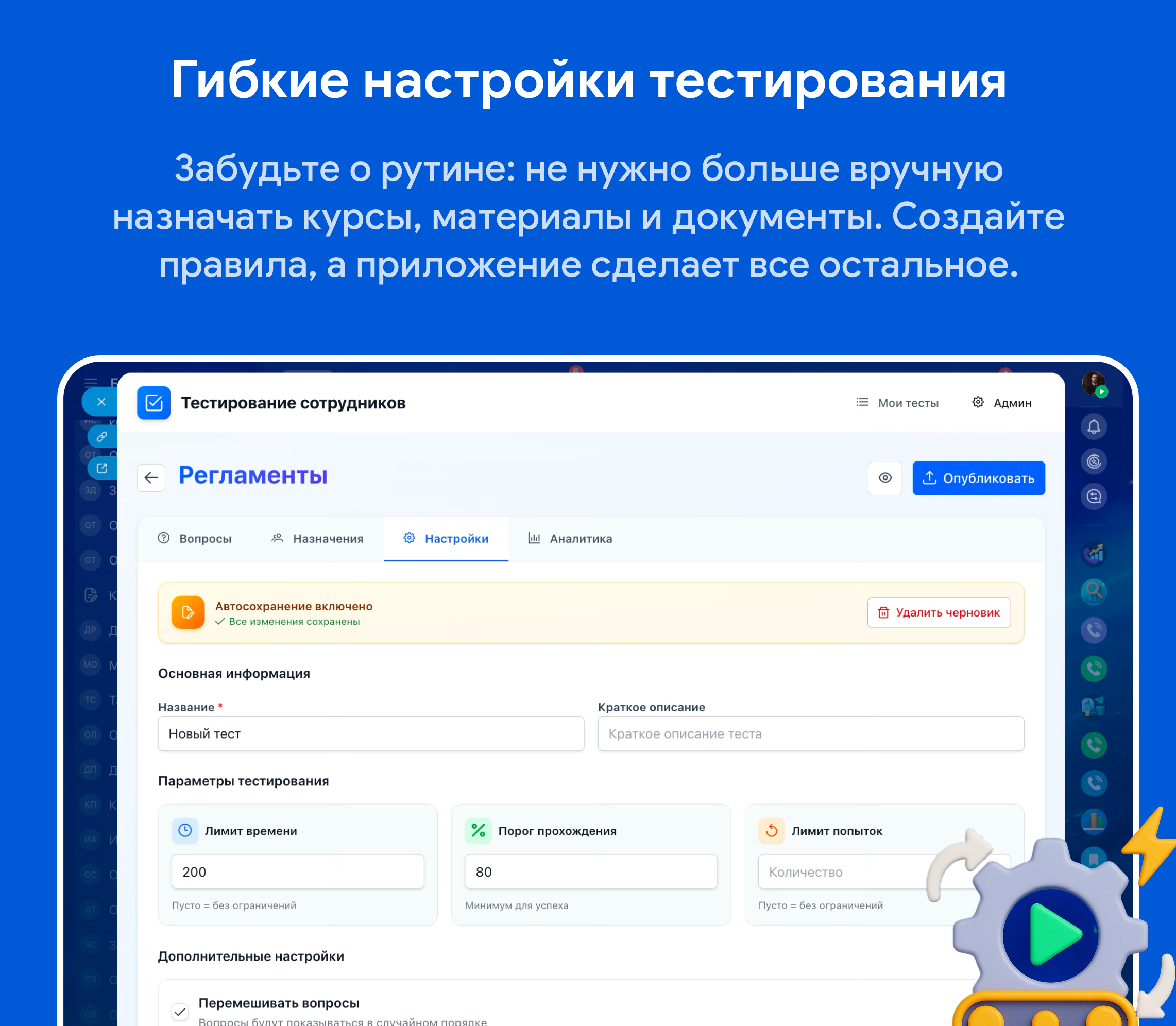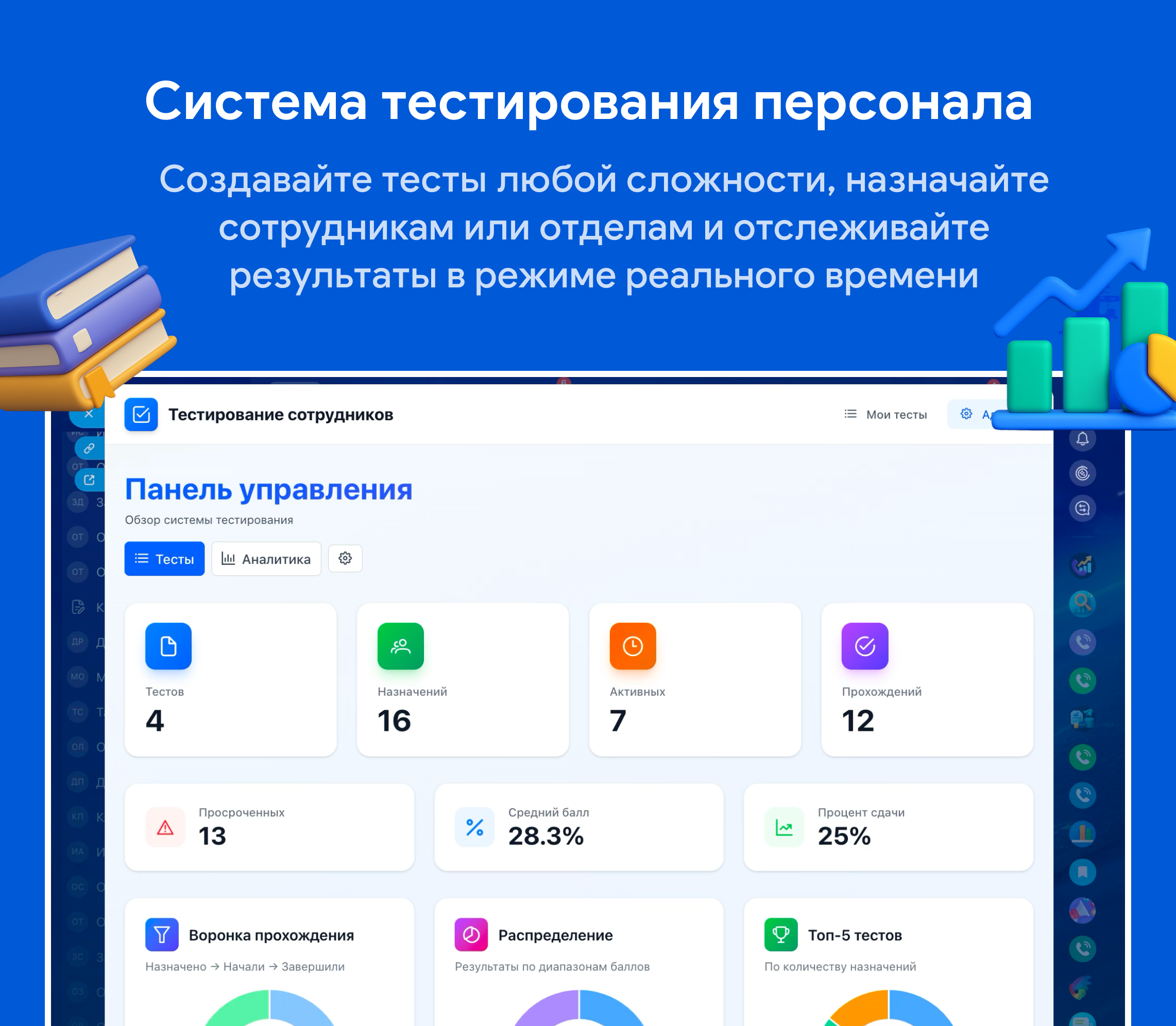 Тестирования персонала с гибкими настройками и аналитикой