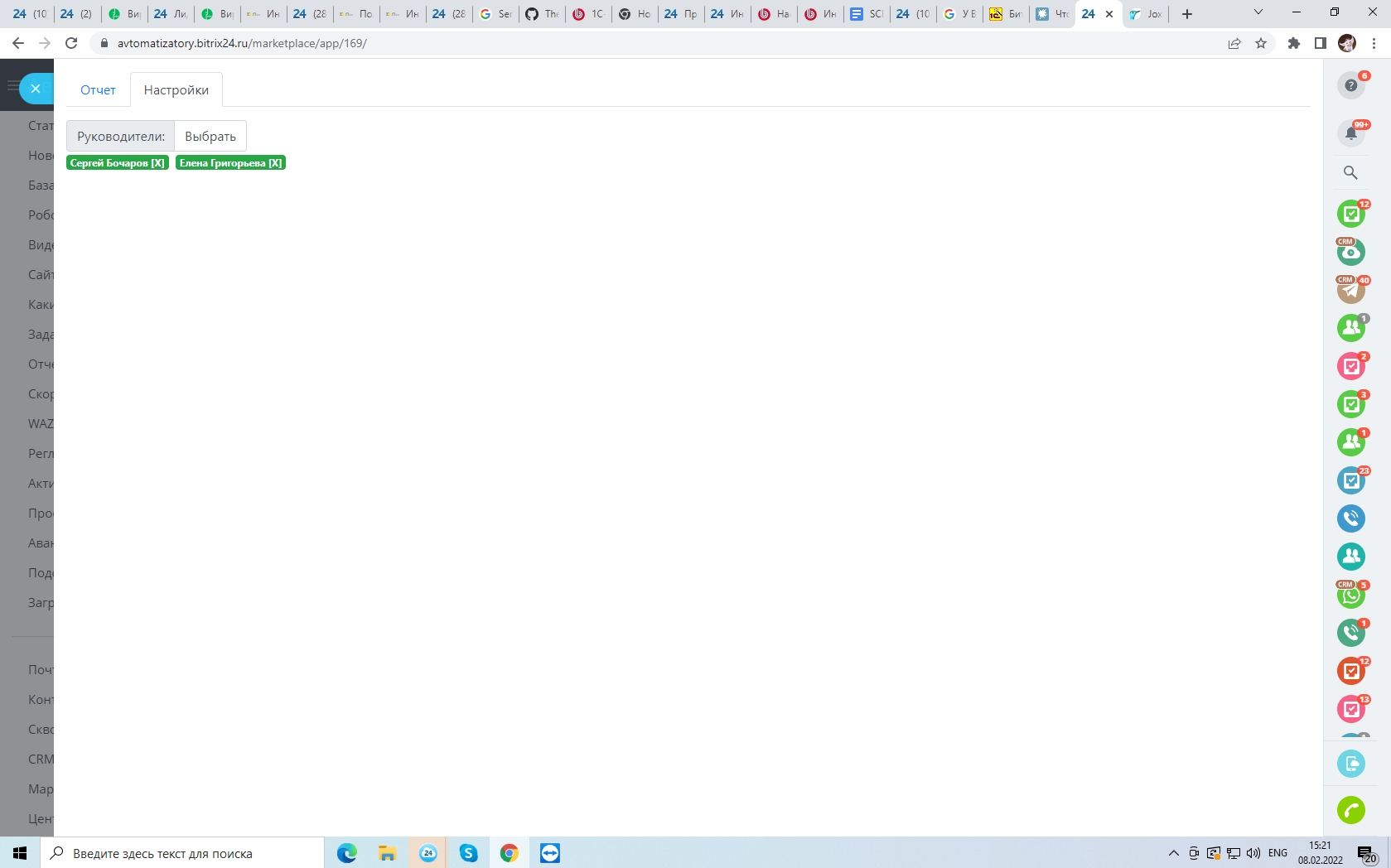 Вкладка настройки доступна администраторам портала и сотрудникам указанным как руководитель в настройках приложения.
