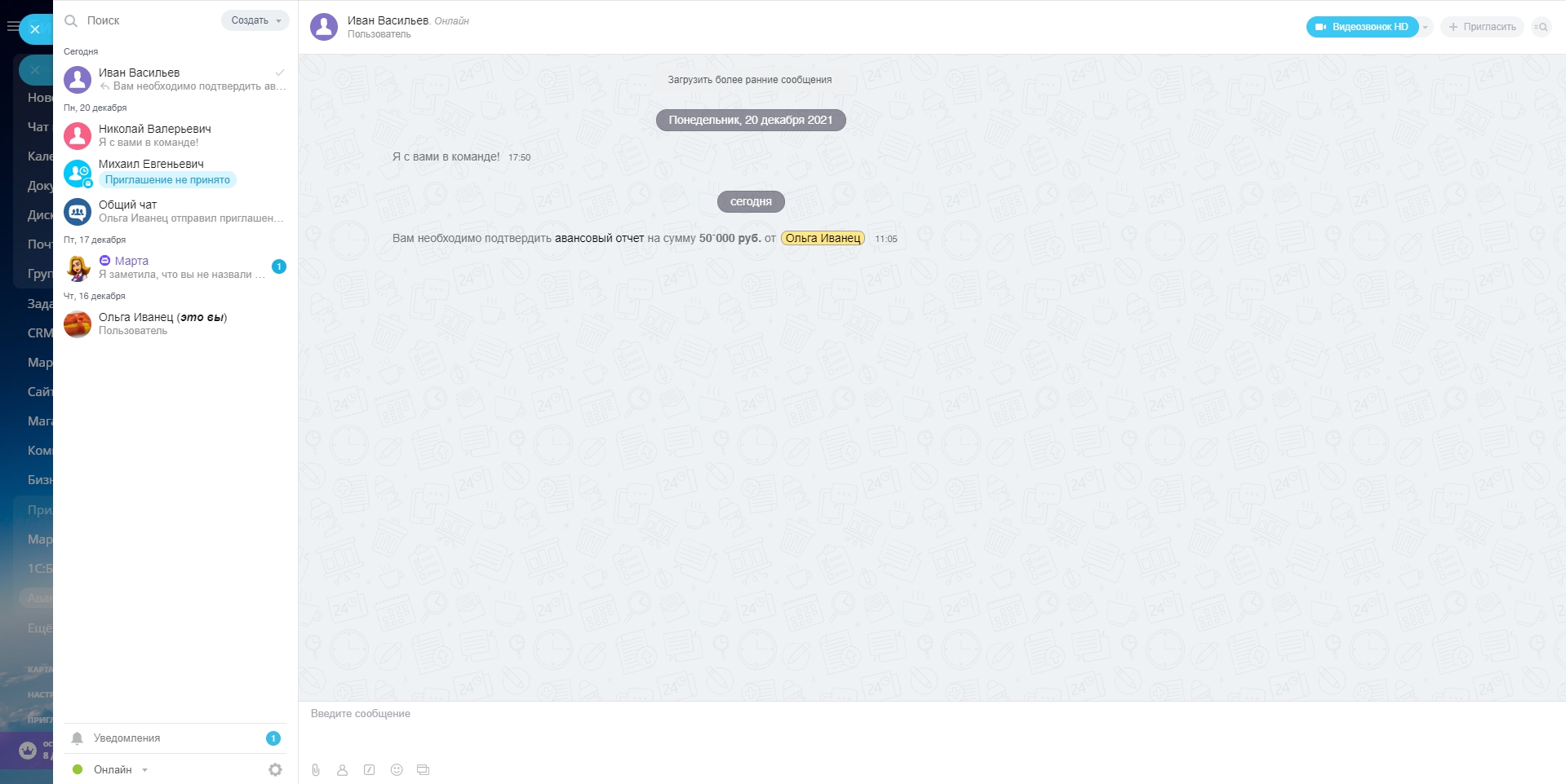 После сохранения отчета все руководители получат уведомление в чат с сотрудником.