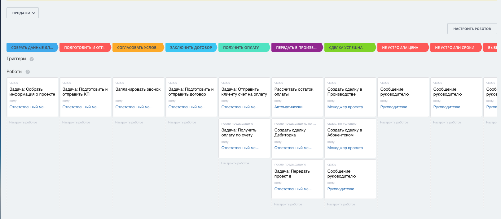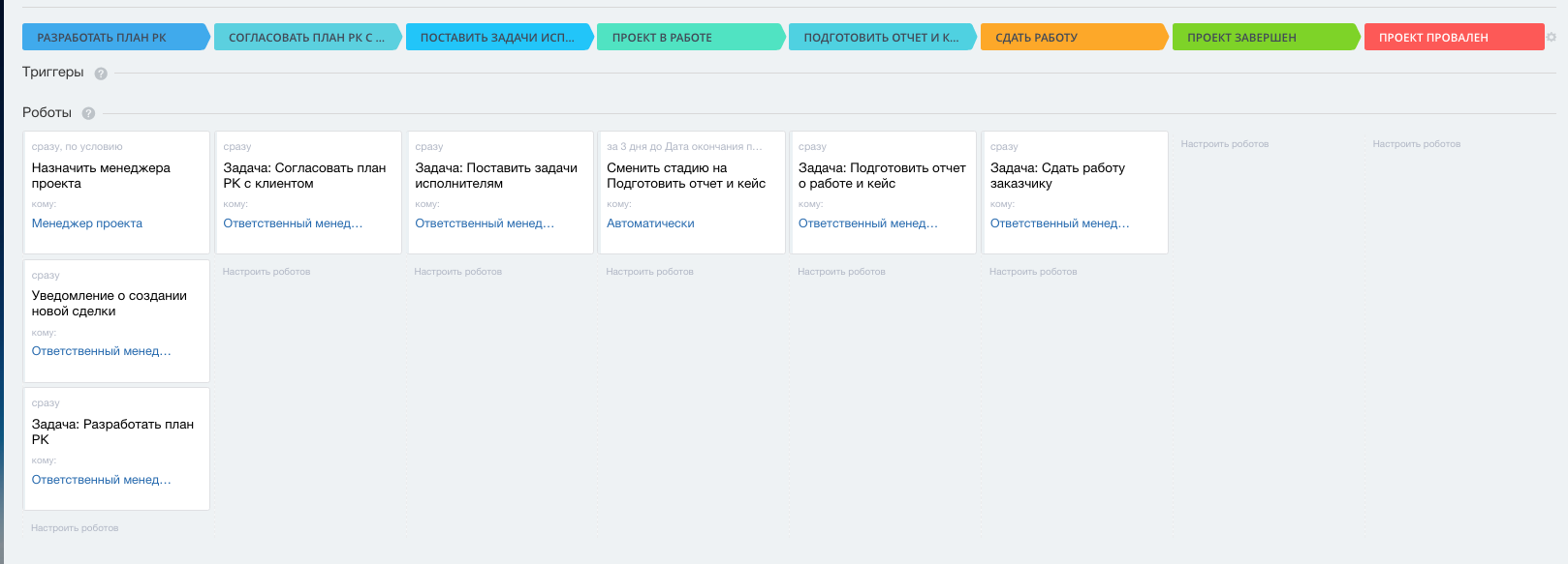 3. Задачи и подбадривающие уведомления для менеджера, которые создаются автоматически на каждом этапе работ