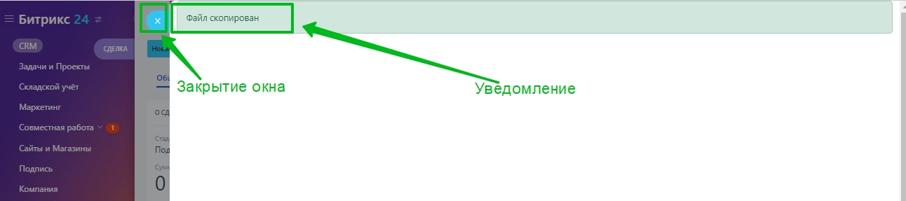 - Откроется окно с уведомлением “Файл скопирован”. Закройте это окно