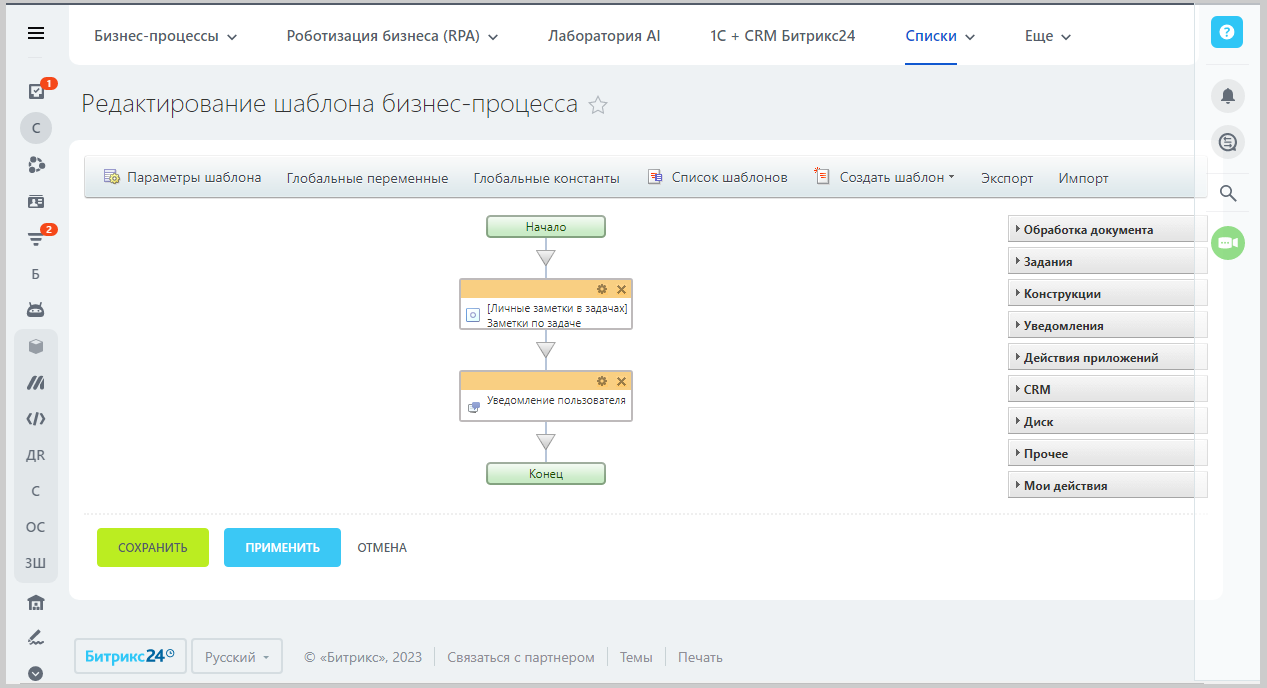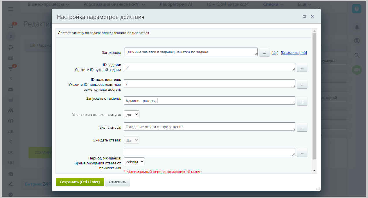 С помощью приложения "Личные заметки в задачах" вы можете быстро передавать данные по задаче дальше в вашем бизнес-процессе.