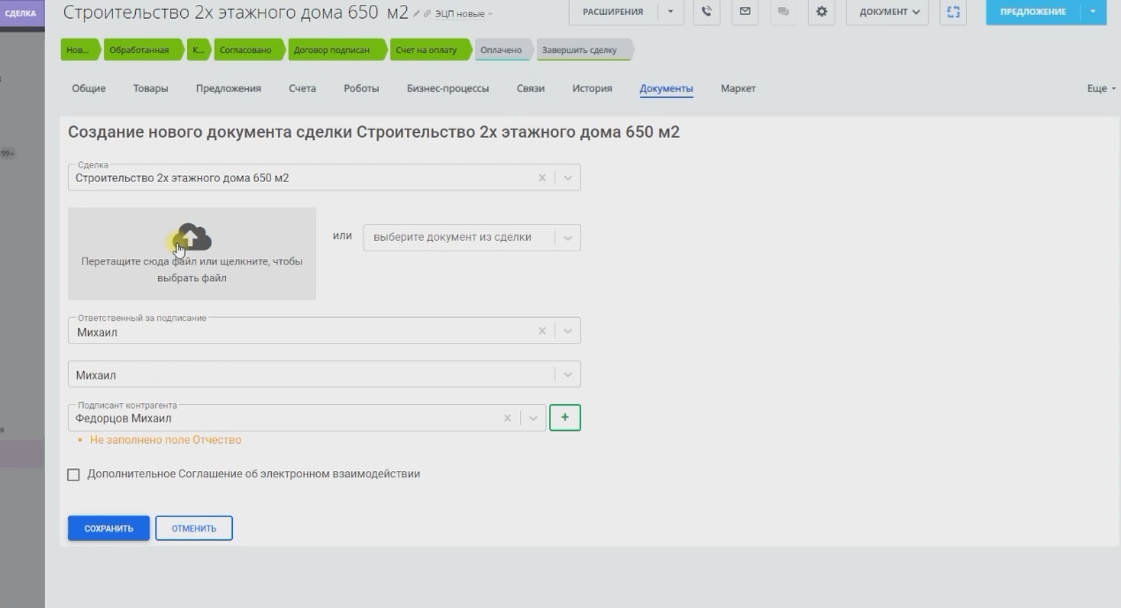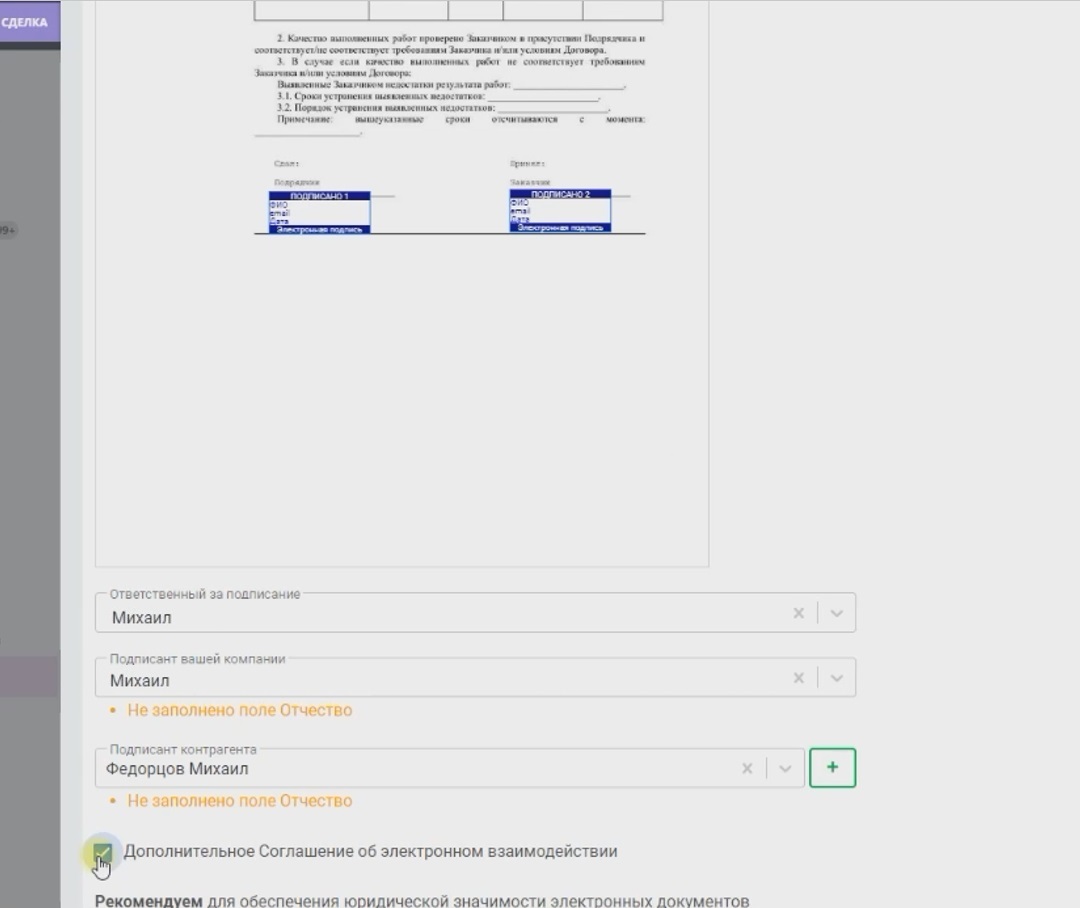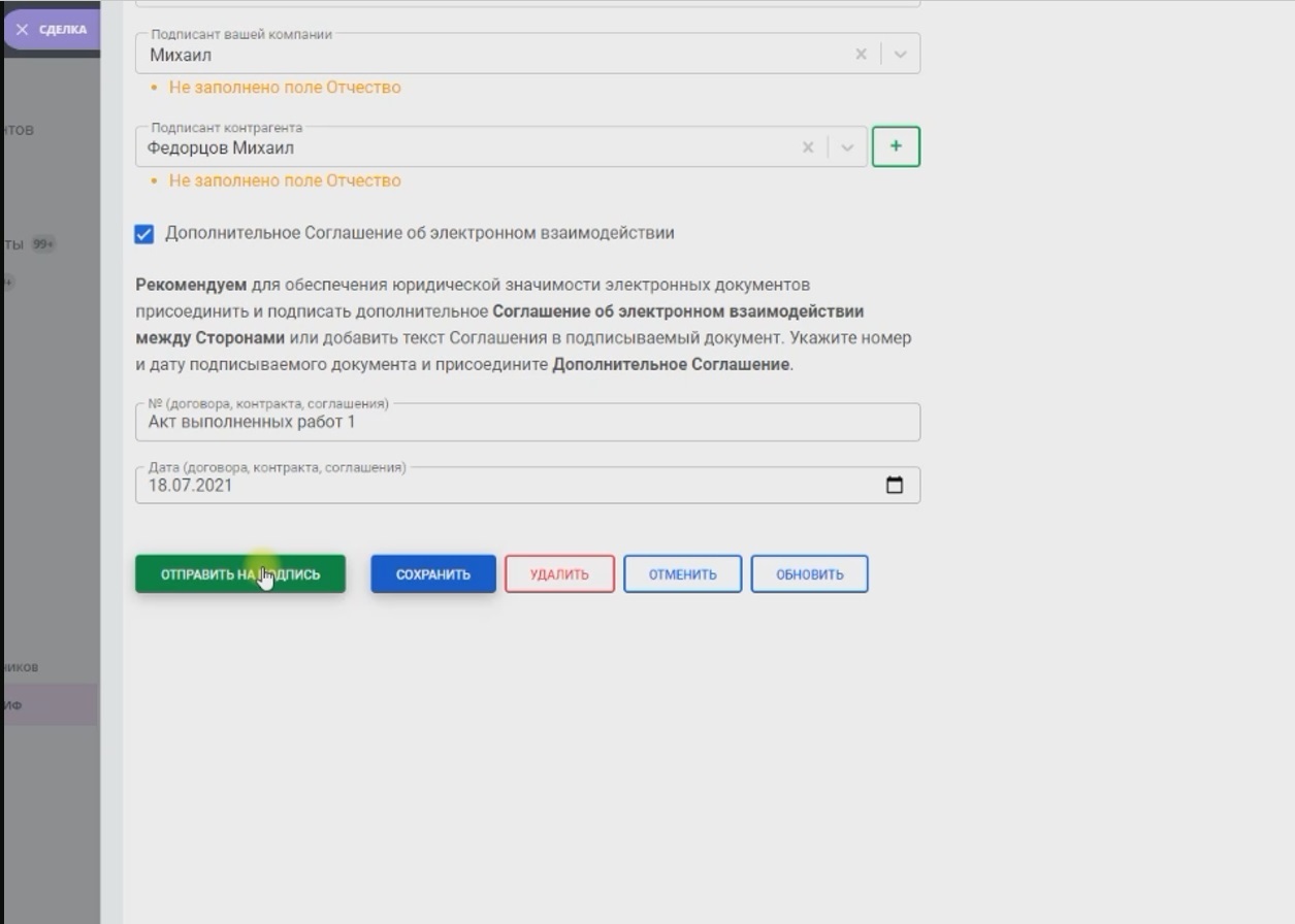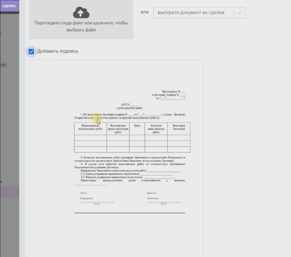 Добавляем документ, который хотим подписать и отправляем контрагенту или клиенту.