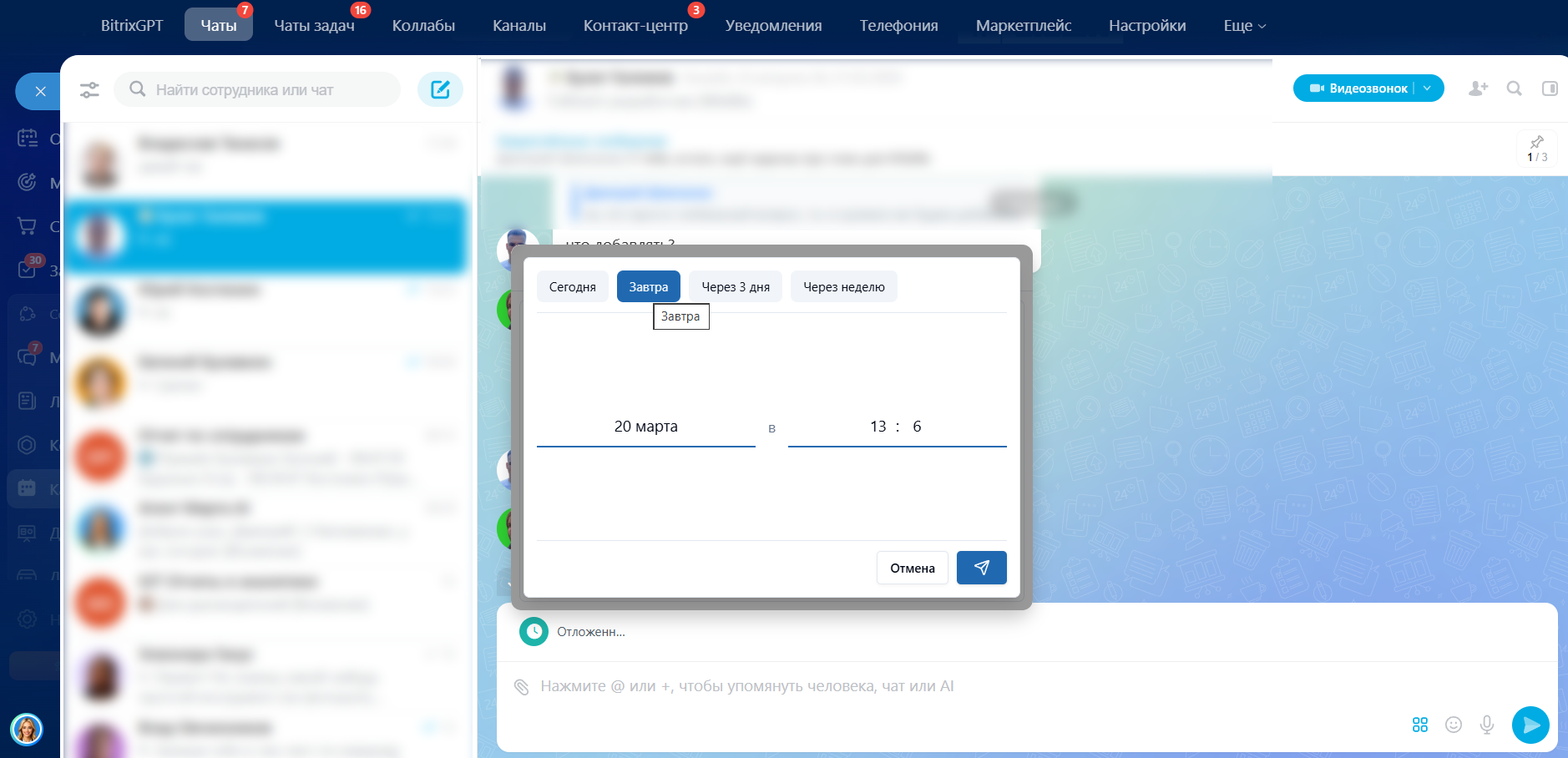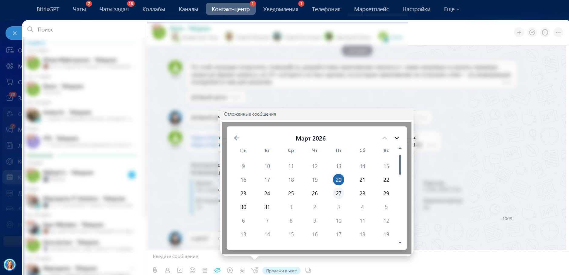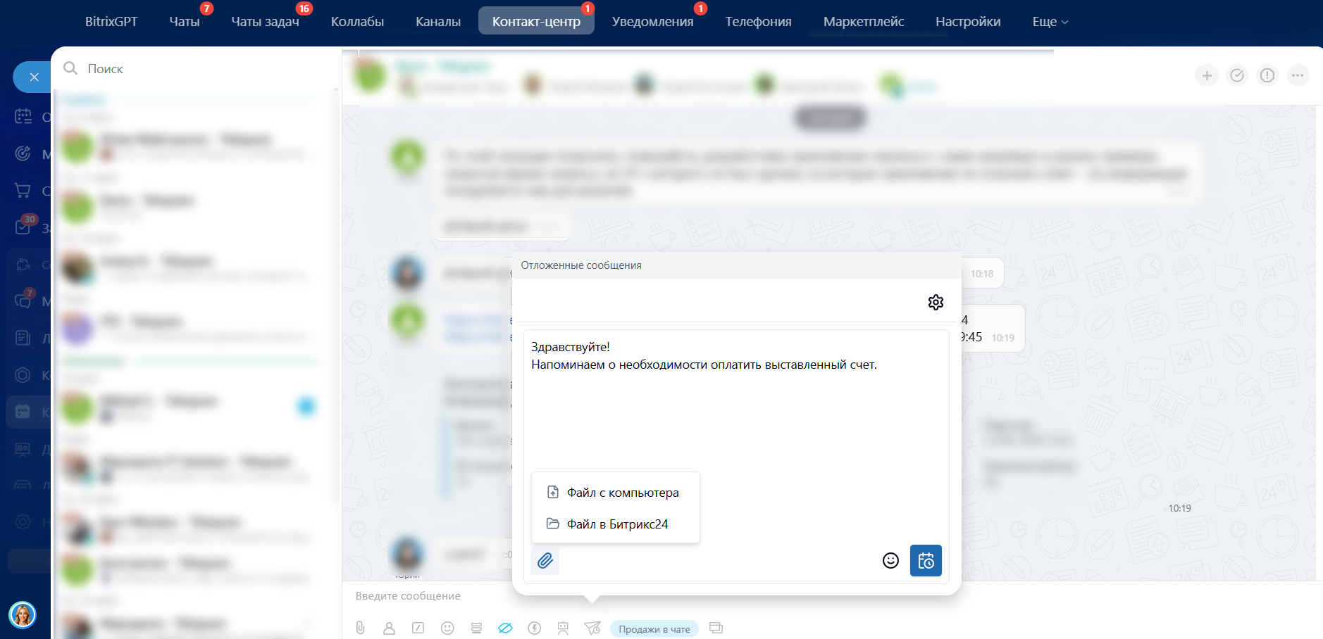 Отложенные сообщения в чаты и открытые линии