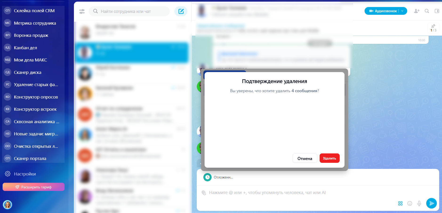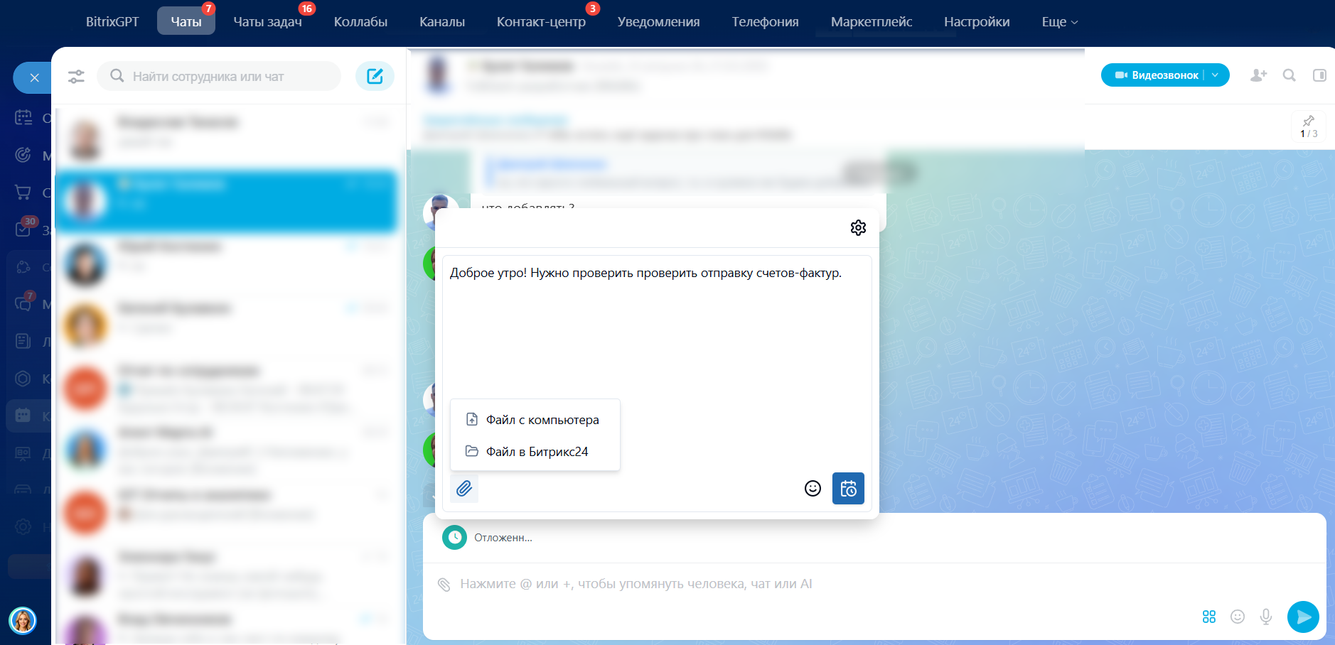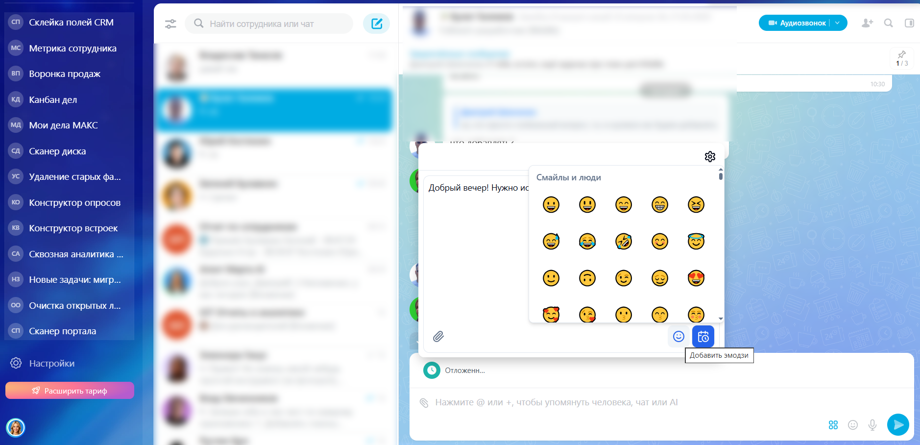 - Создавать отложенные сообщения для взаимодействия внутри компании;