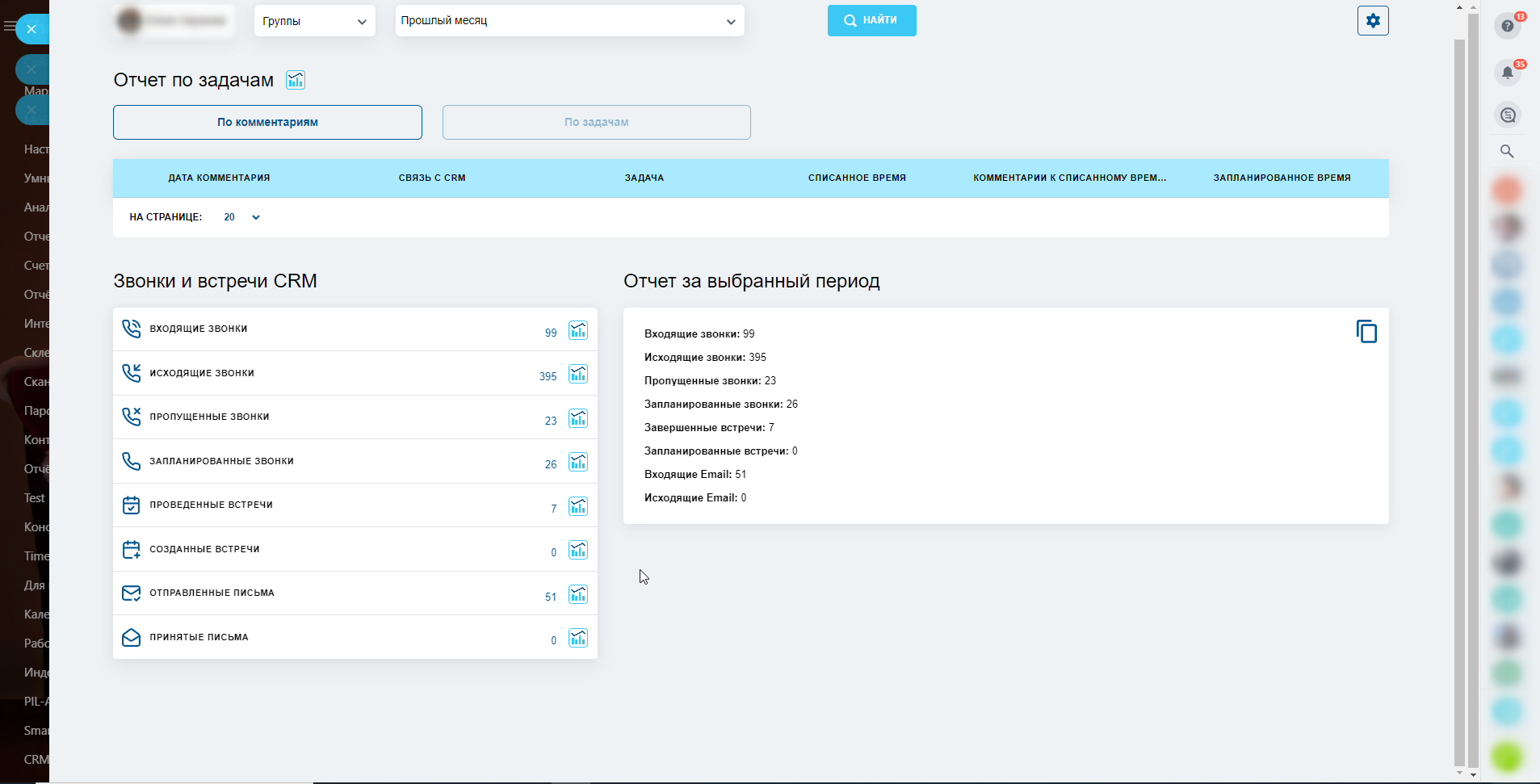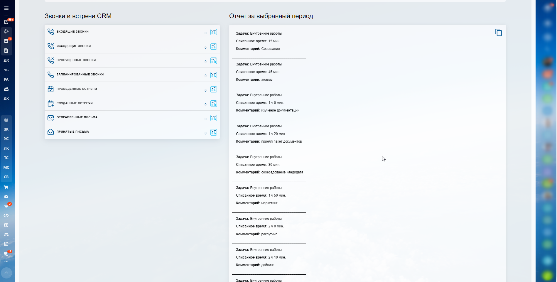 - Возможность отключить лишние отчеты (задачи, дела, текстовый вид);