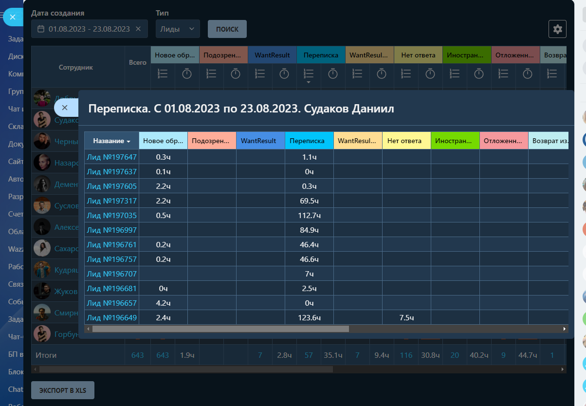 Использую приложение, чтобы контролировать время нахождения сделок в каждой из стадий. Е... ещё