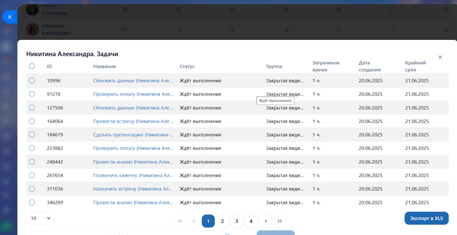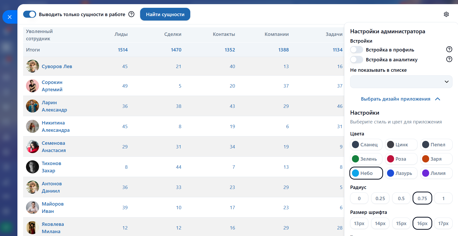 - Возможность передать сущности и задачи уволенных сотрудников другим сотрудникам;