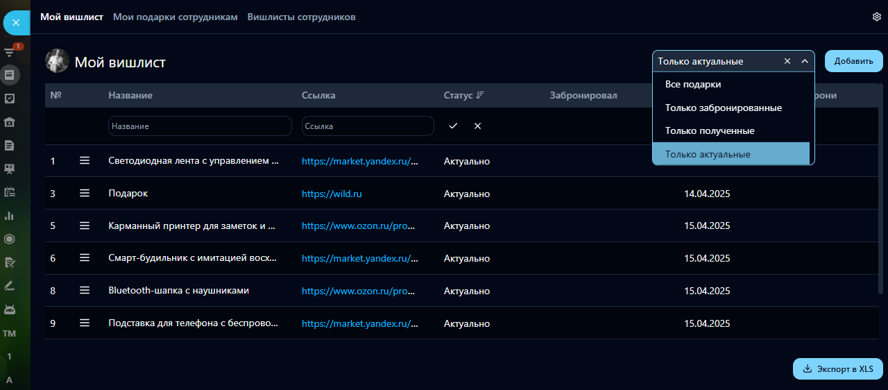 Сотрудники смогутВести свой вишлист, добавлять в него подарки, которые они хотели бы получить;