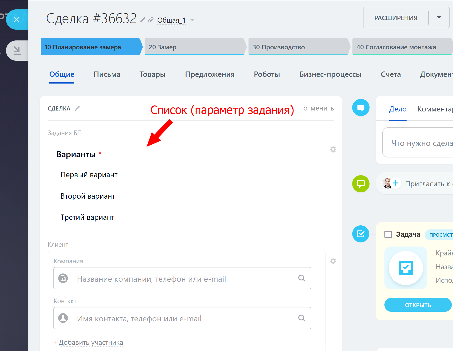 Согласитесь, удобно, когда вы работаете в сделках, и согласования или ввод параметров в заданиях бизнес-процессов приходят именно в интерфейсе сделок, а не в раздел "Автоматизация".
