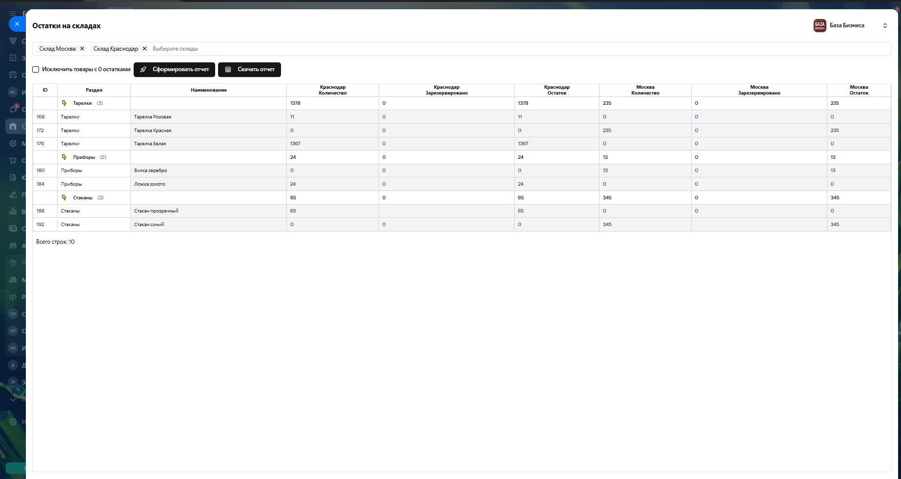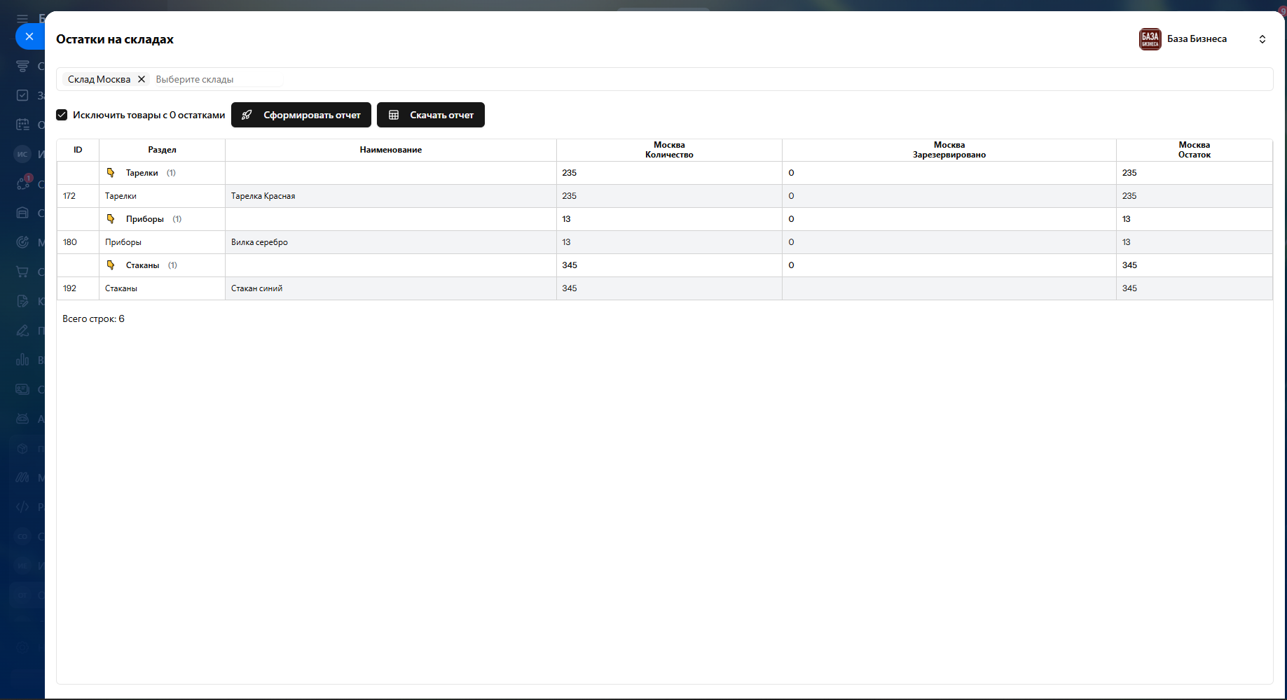 ✅ Показывает остатки товаров по складам.