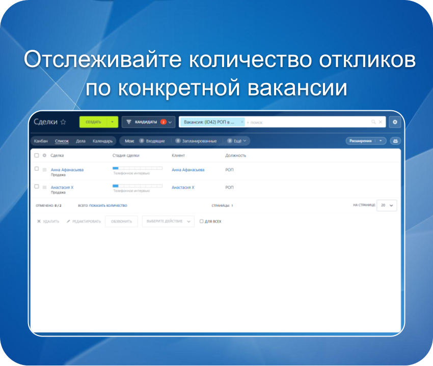 Отслеживание откликов и кандидатов в разрезе этой вакансии;
