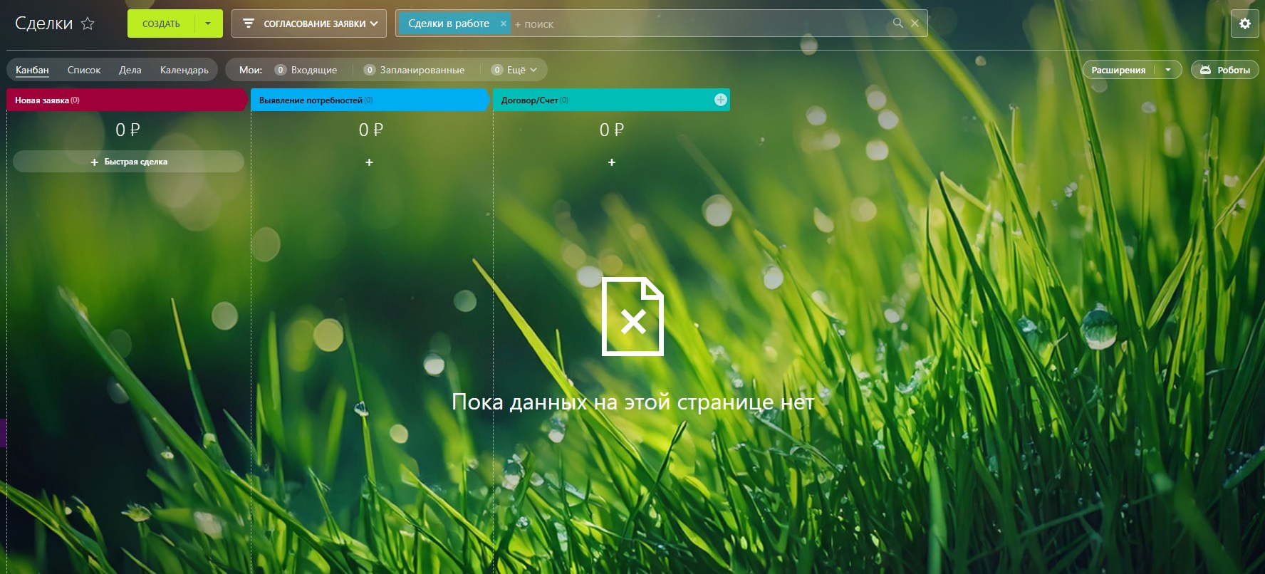 - Согласование заявки – воронка для первичной обработки и согласования заявок клиентов на предоставление услуг. Она помогает структурировать процесс взаимодействия с клиентами на этапе обсуждения условий сотрудничества