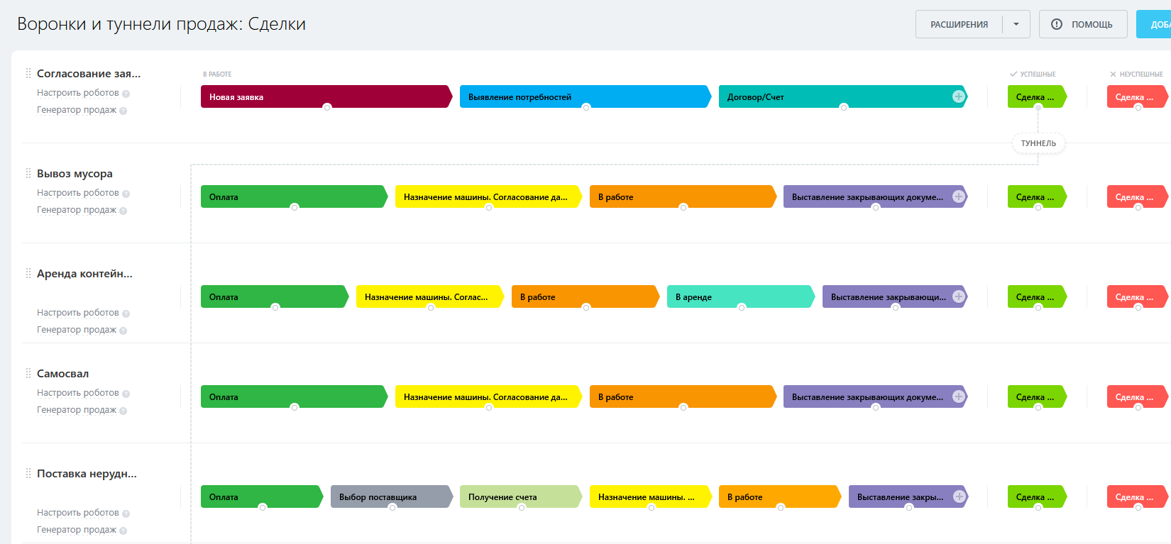 - Аренда контейнеров – воронка отвечает за управление процессом аренды контейнеров. Она помогает контролировать сроки аренды и своевременно реагировать на продление или возврат контейнера