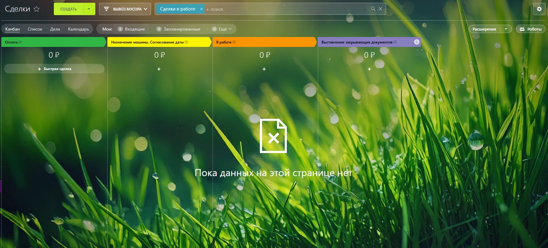 СтройВывоз CRM решает эти проблемы: система упорядочивает работу с заявками и сделками, автоматизирует ключевые этапы процессов, контролирует сроки аренды и доставки, а также фиксирует все расходы. В результате компания снижает риски, экономит время сотрудников и получает полный контроль над бизнесом.