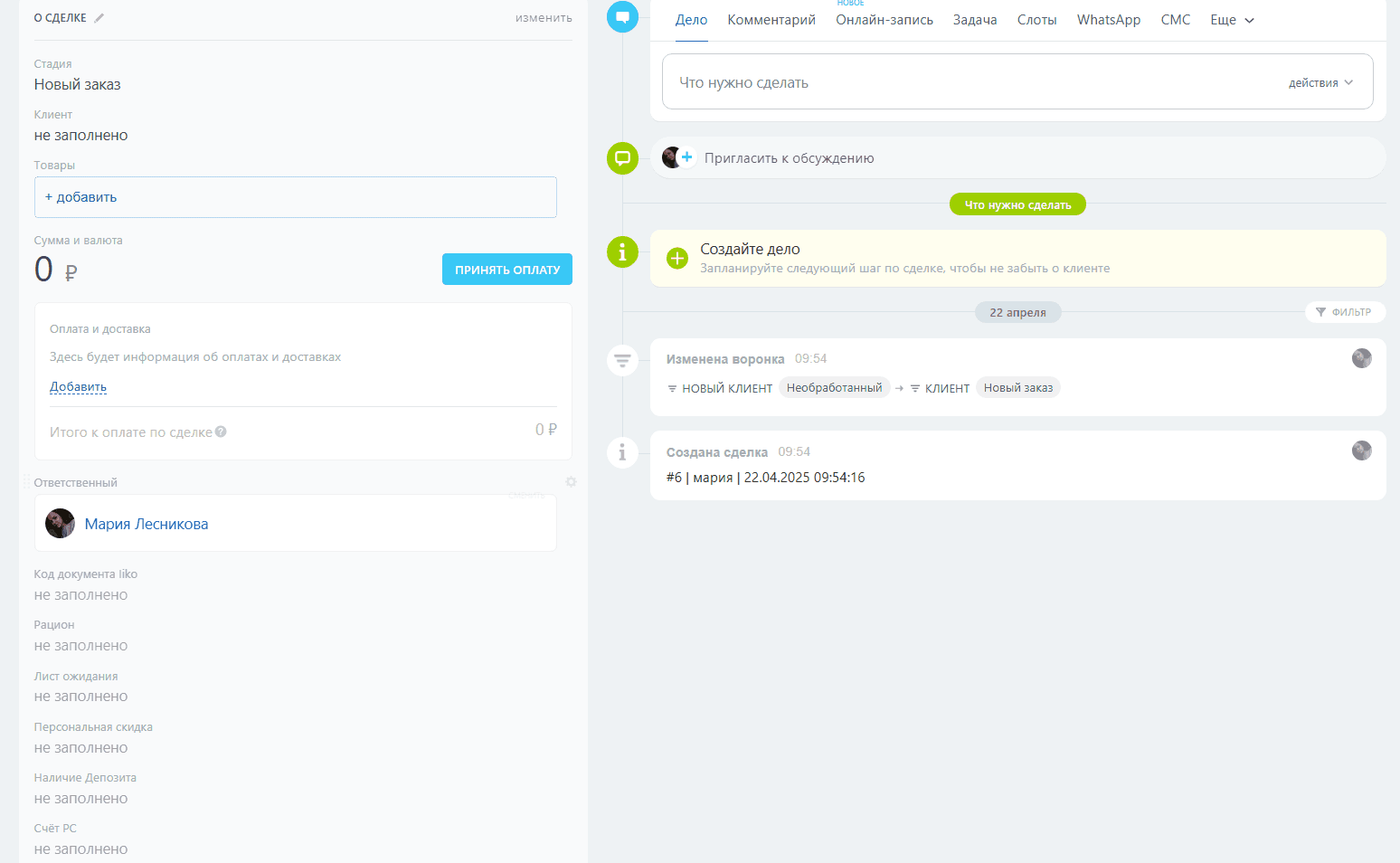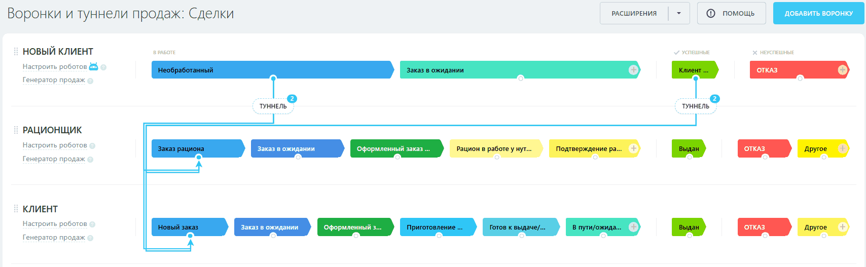 - Специализированная воронка для нутрициолога: Отдельный рабочий поток специально настроен для специалистов по питанию.