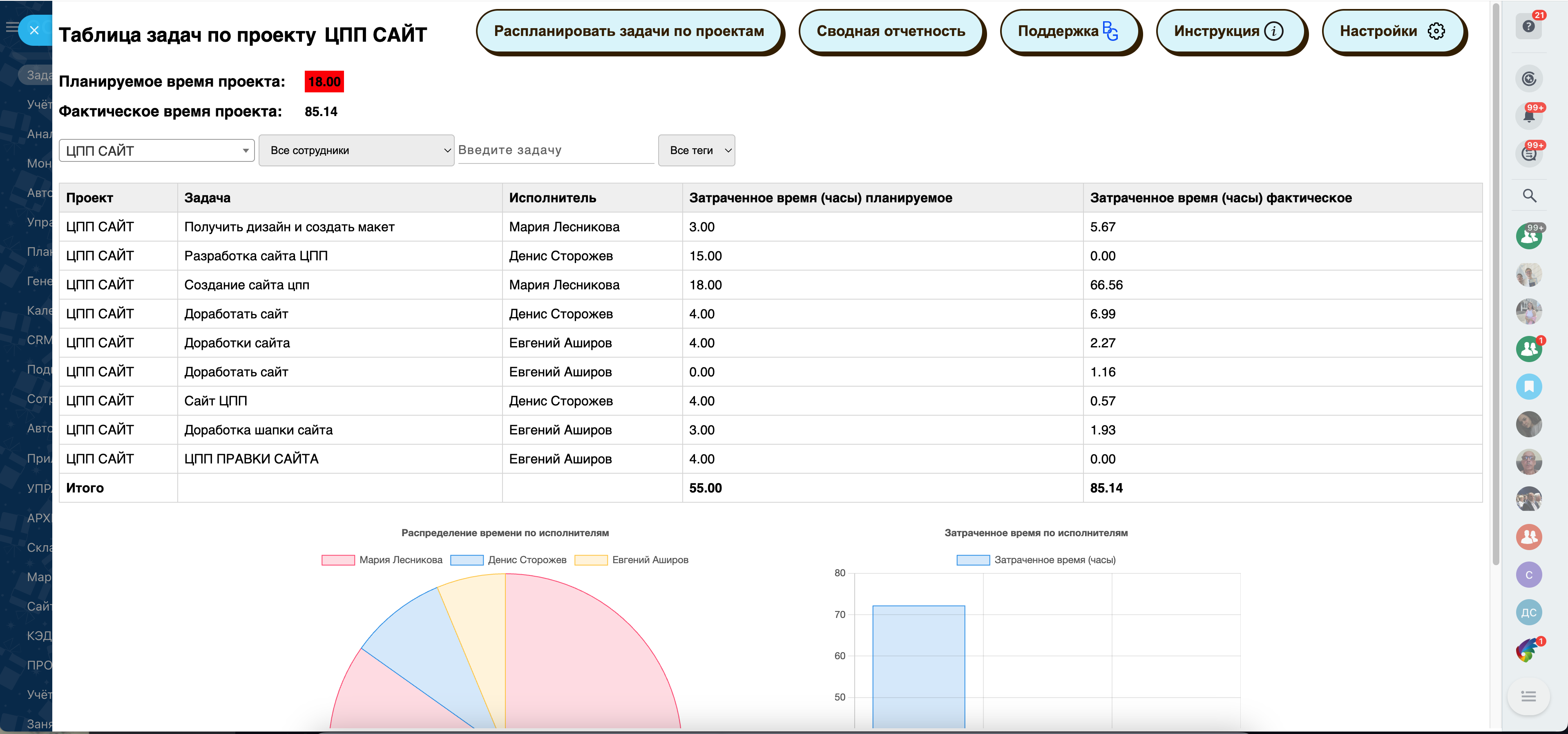 Планировщик задач и Аналитика и контроль трудозатрат по проектам
