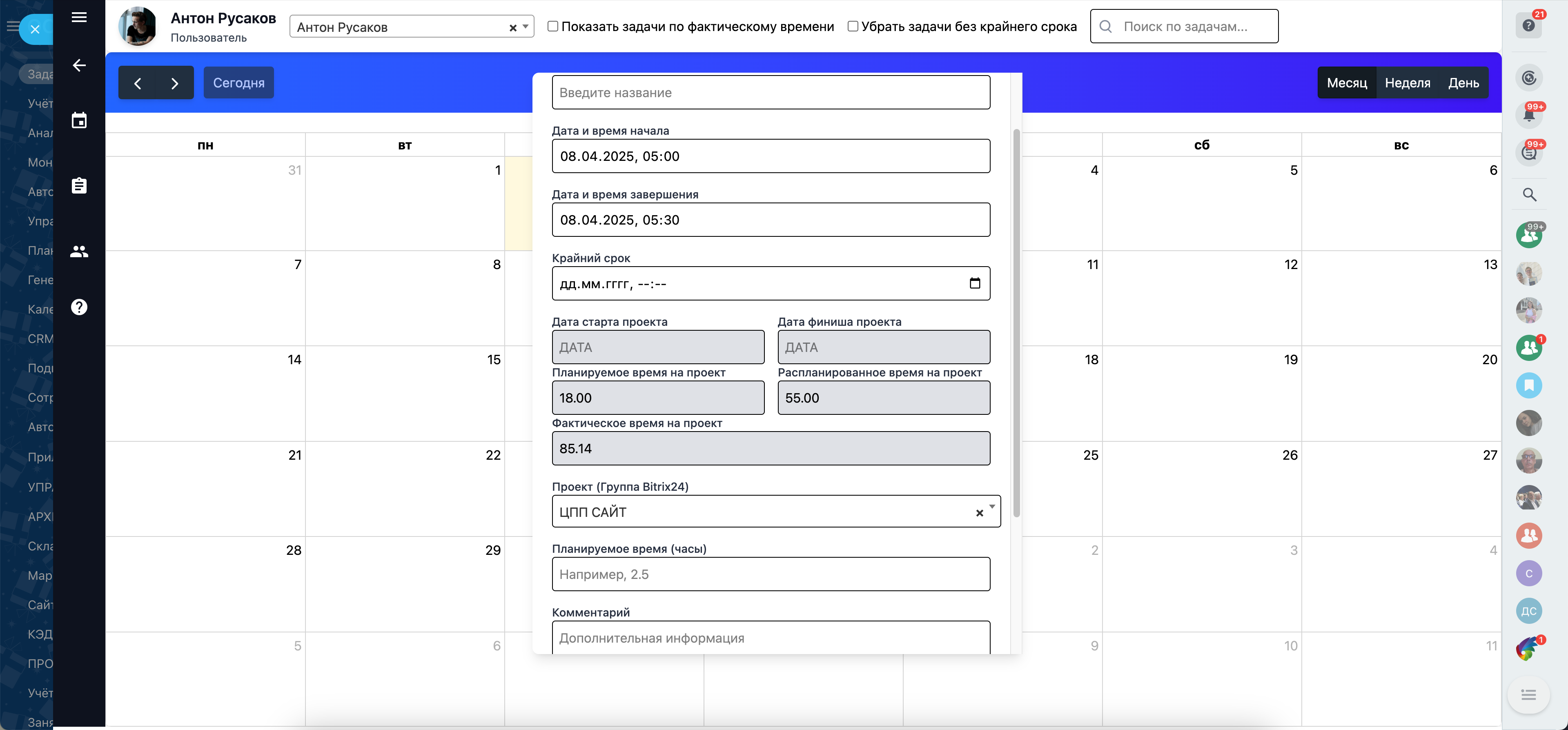 При постановке задач теперь есть дополнительные поля с временем проекта