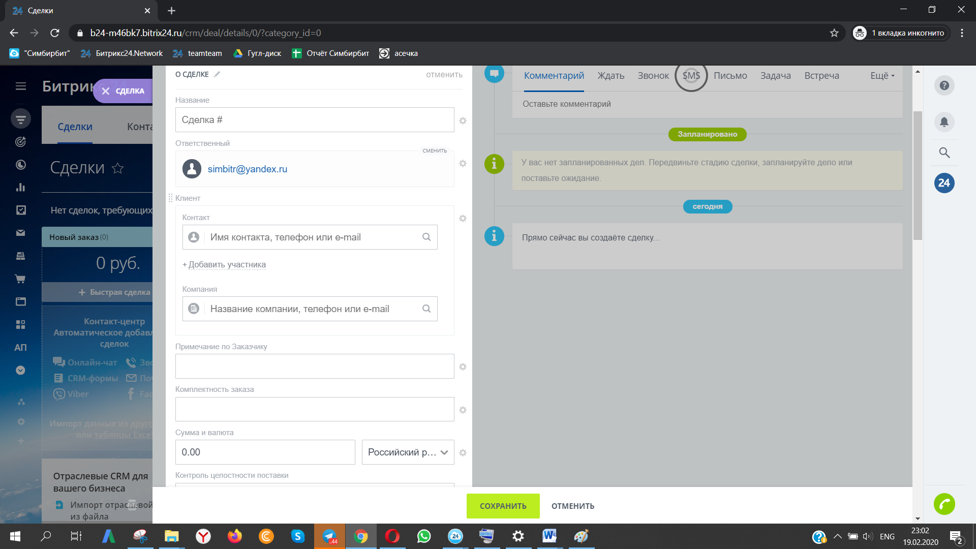 Как видим в карточке сделки есть возможность указать всю необходимую информацию по заказу и заказчику, такую как: