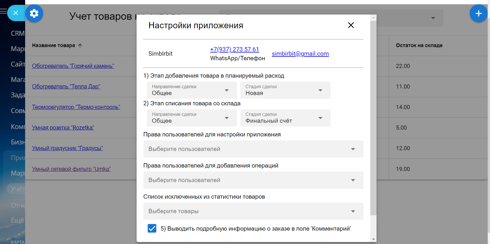 Позволяет отслеживать фактические остатки при добавлении товара в сделку, чего нет даже у встроенного складского учета в Б24.