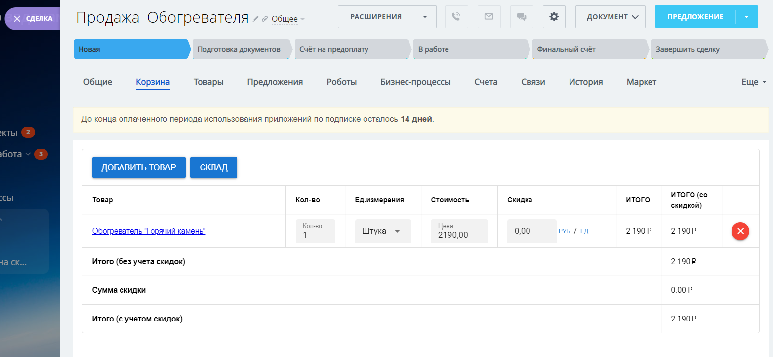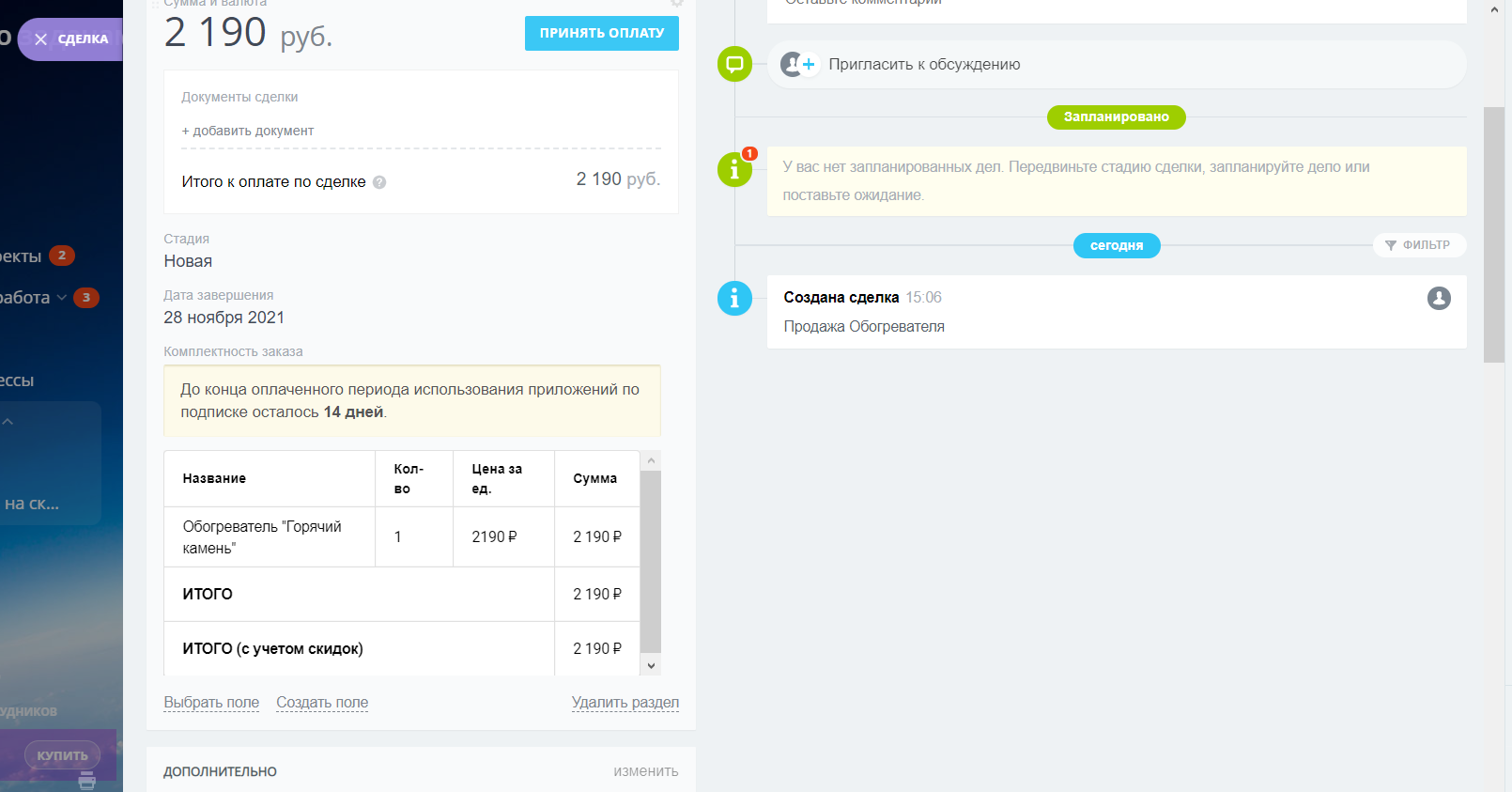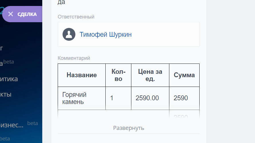 - Отображение товаров по количеству и цене прямо в карточке сделки