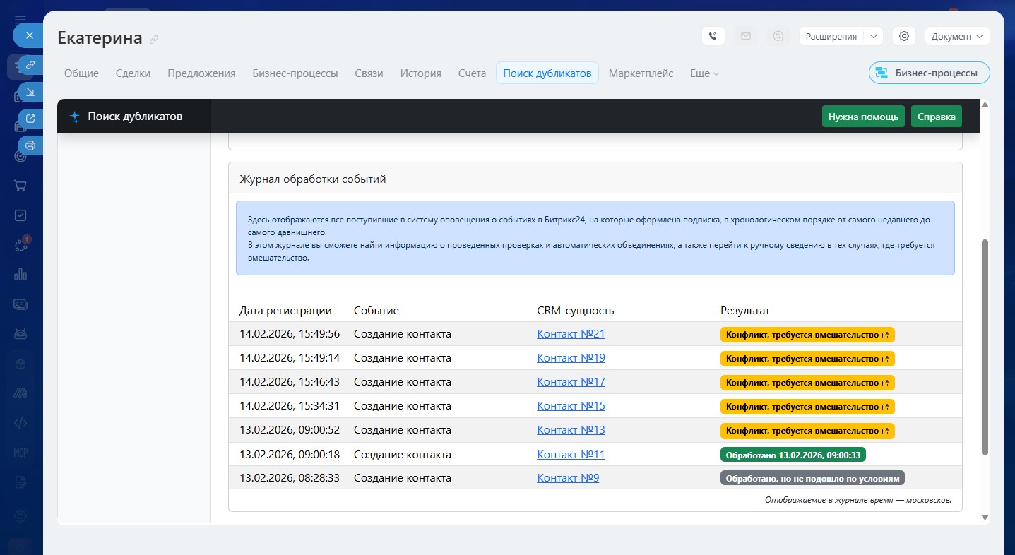 Приложение становится надежным инструментом контроля качества данных и упрощает работу с клиентской базой в CRM «Битрикс24».