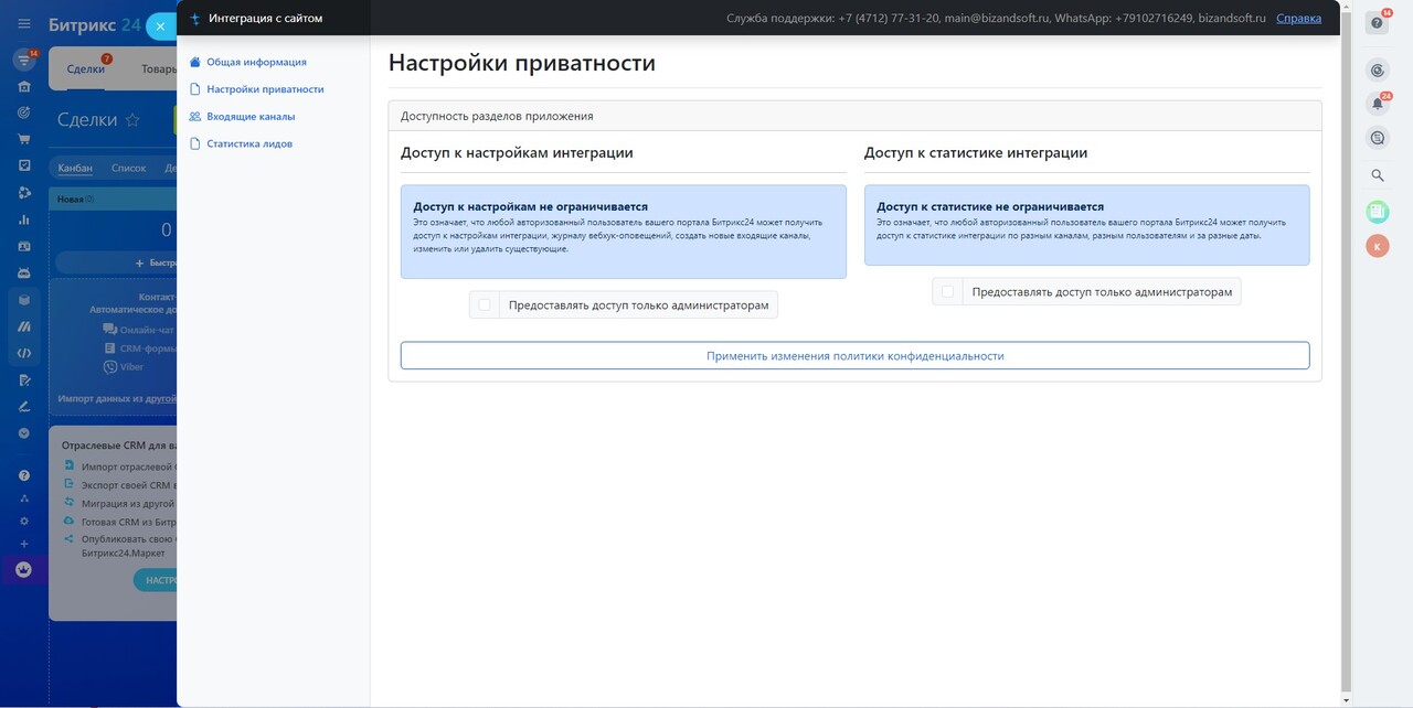 Не беда! Наше приложение позволит построить процесс интеграции так просто, что подключить к вашей CRM «Битрикс24» будет возможно абсолютно любой сайт.
