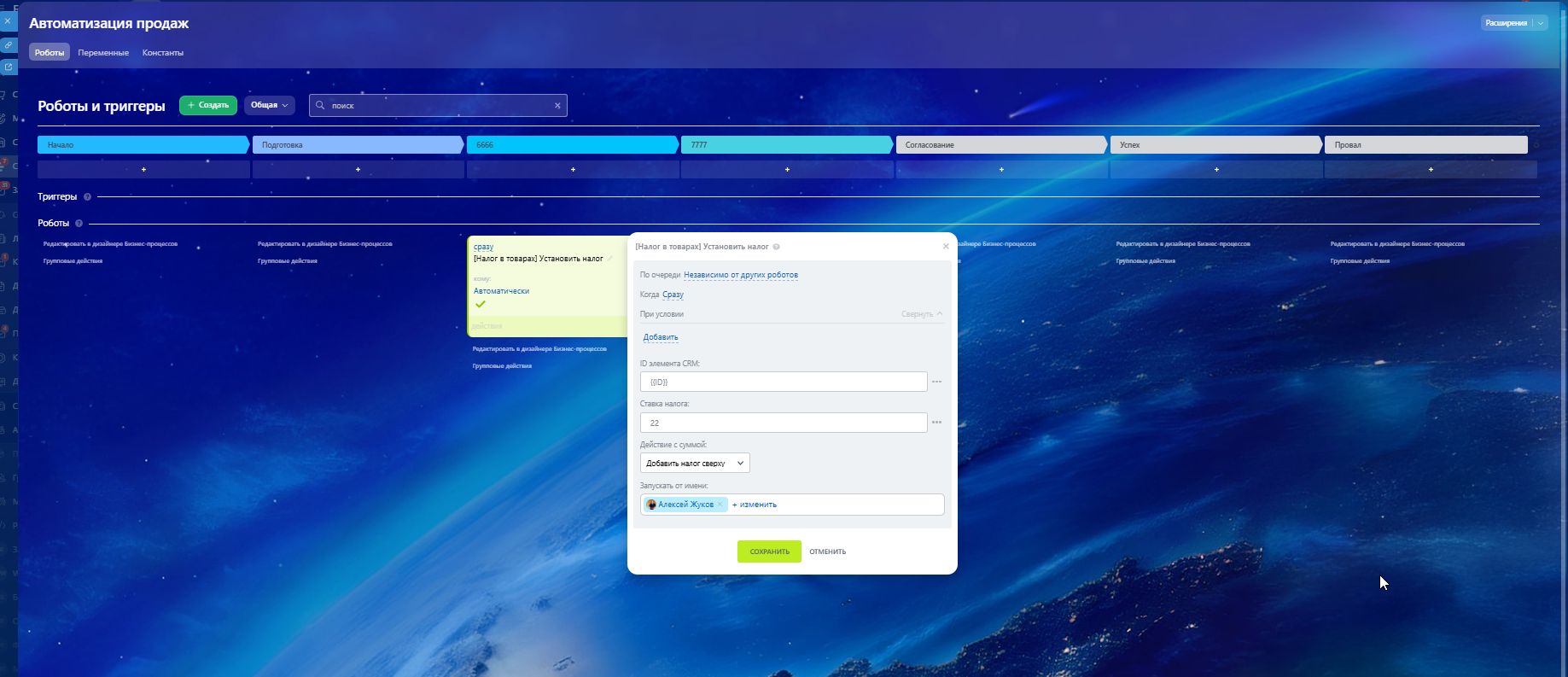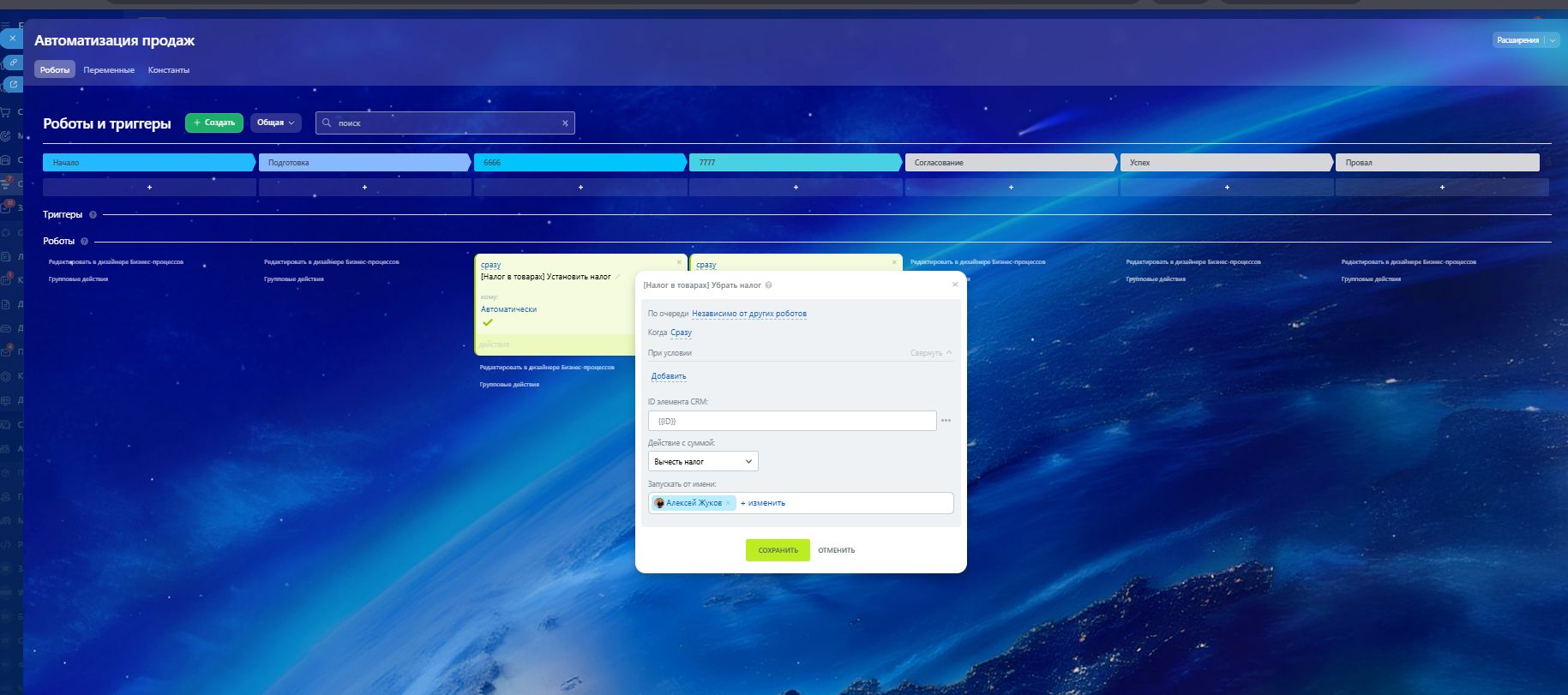 Робот активируется в бизнес-процессе или в воронке продаж