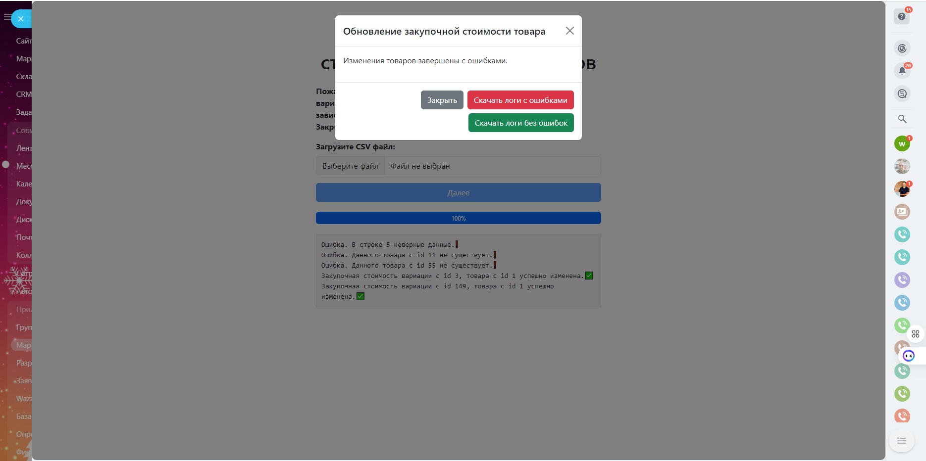 Обновляйте закупочные цены на товары легко и быстро! Загрузите CSV-файл с идентификаторами товаров и новыми ценами, и мы автоматически обновим цены для всех вариантов товаров. Имеется функция выгрузки логов.
