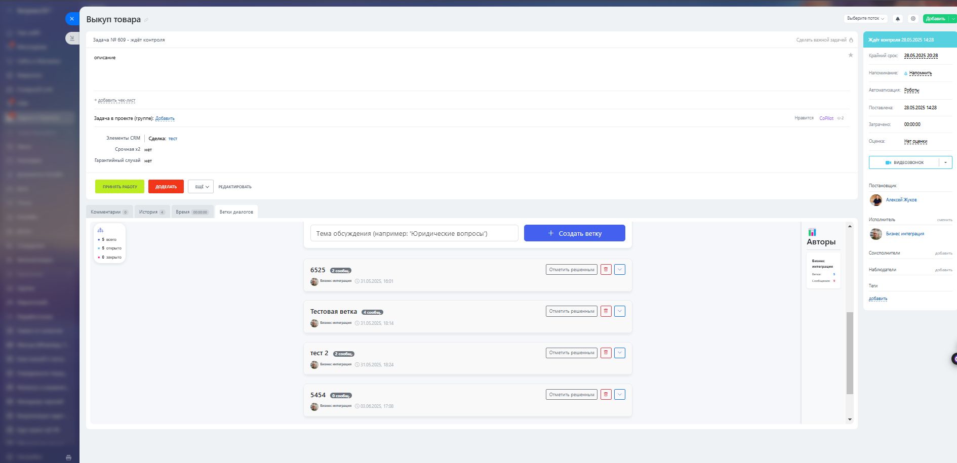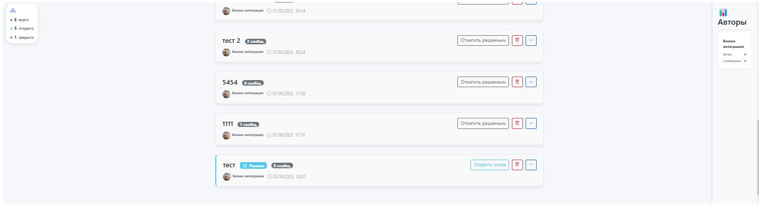 Представьте идеально структурированное пространство для дискуссий в задачах, где каждая тема, вопрос или идея живут в отдельной ветке. Наше решение превращает хаотичные переписки в четкие, управляемые диалоги с интеллектуальной системой организации контента.