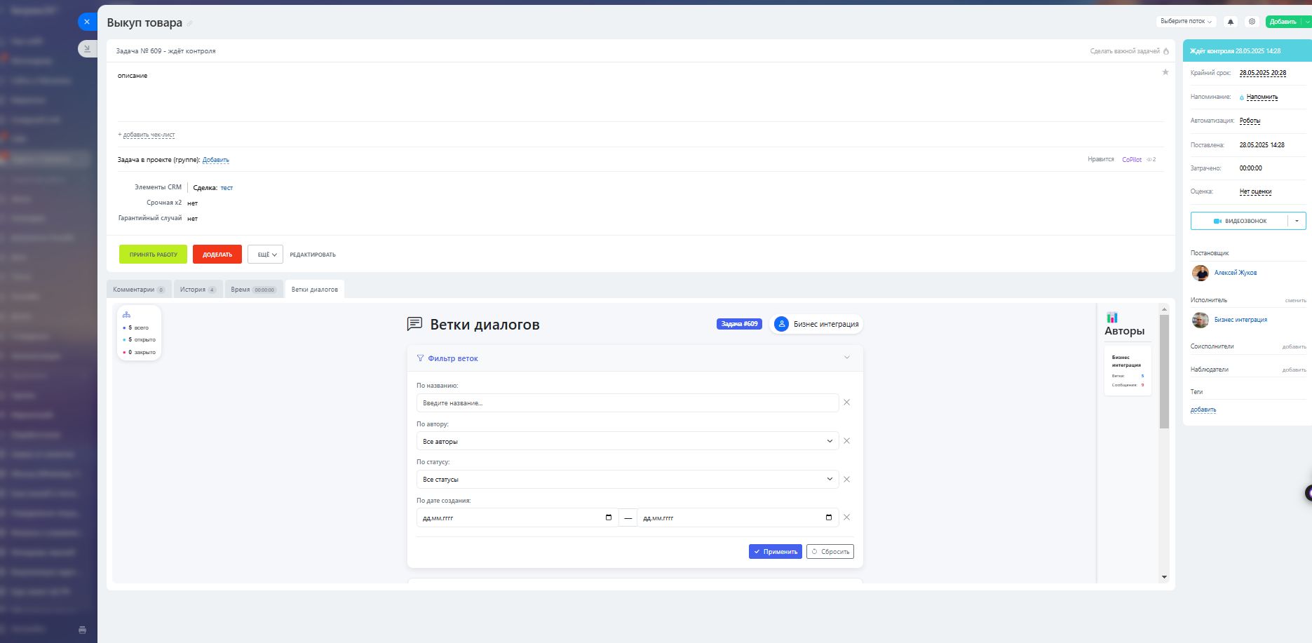 Контекстные ветки — создавайте обсуждения для ТЗ, багов, правок в рамках одной задачи