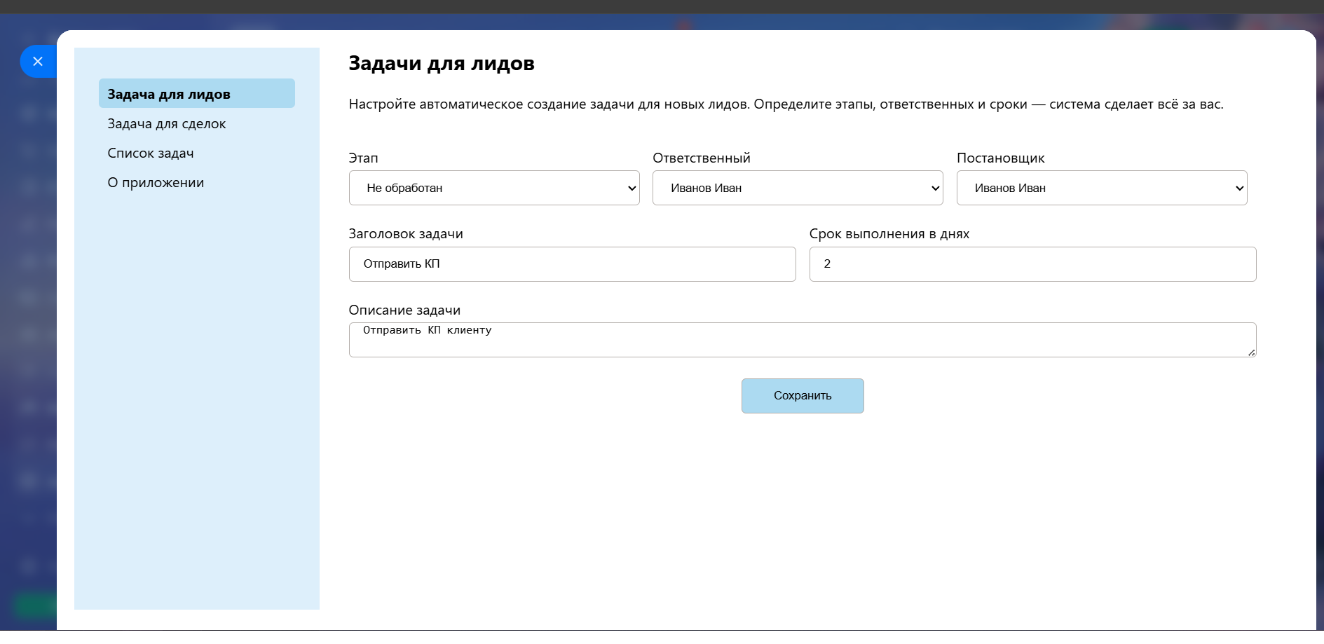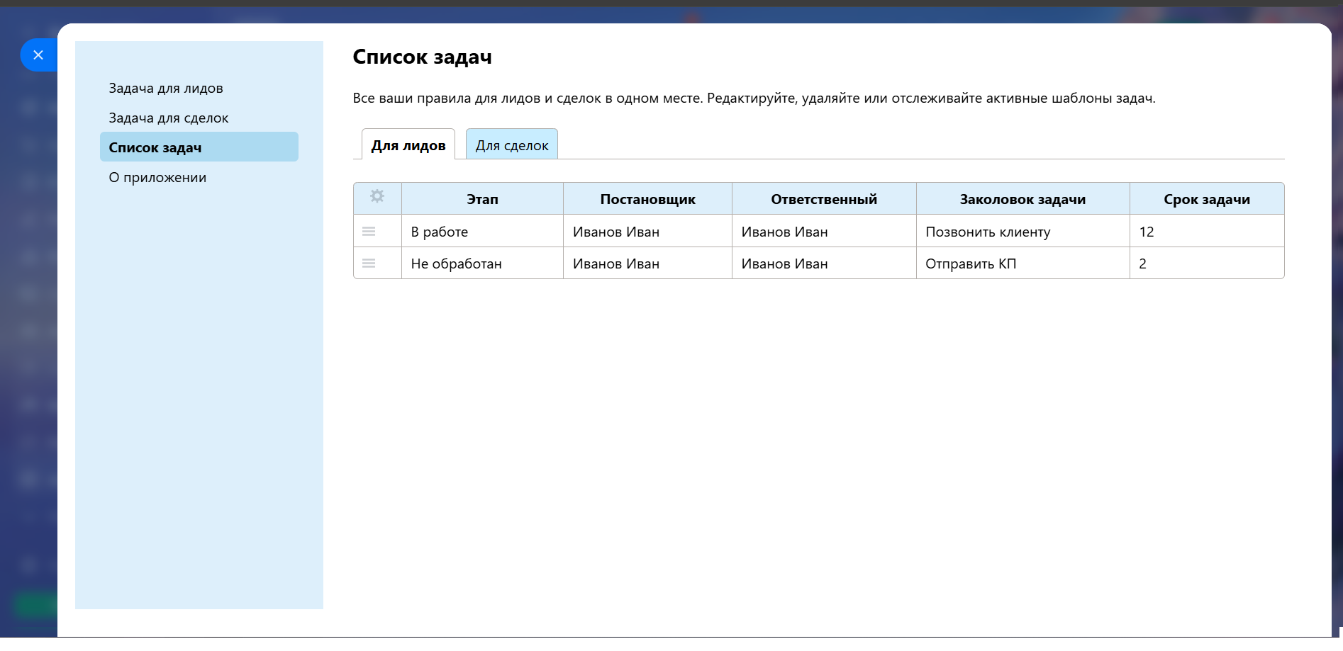 «АвтоЗадачи в сделках и лидах» — ваш надежный механизм для идеального управления сделками. Никаких пробелов, только результат!