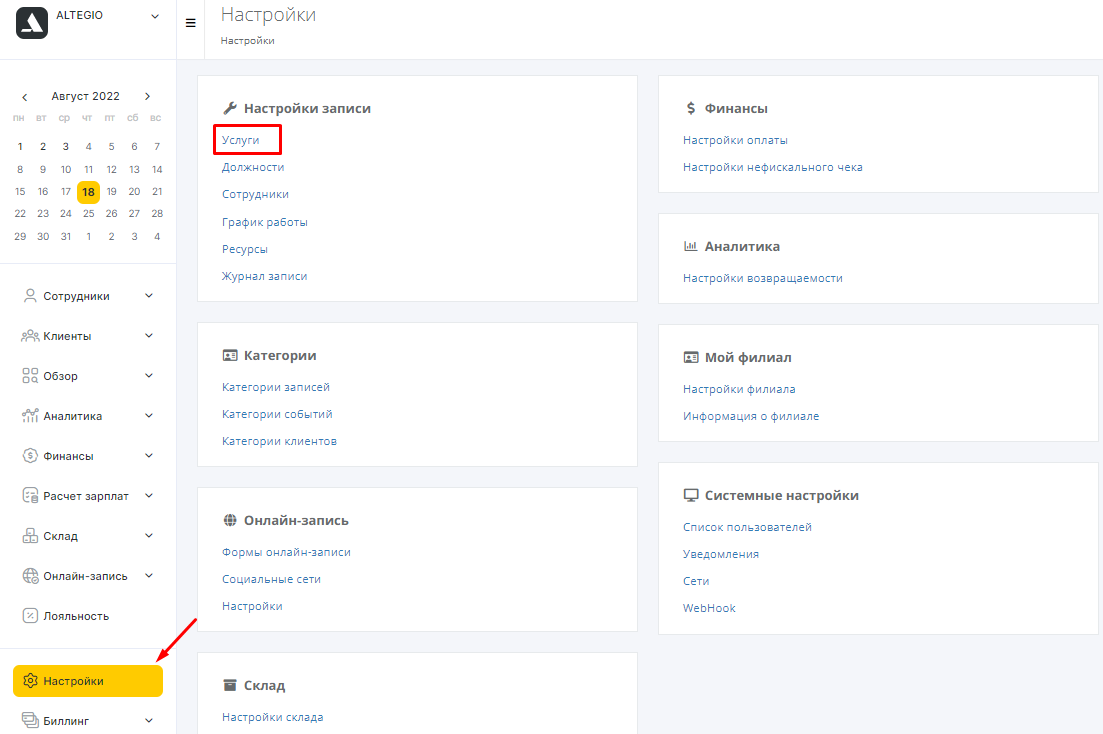 Интеграция с Alteg.io