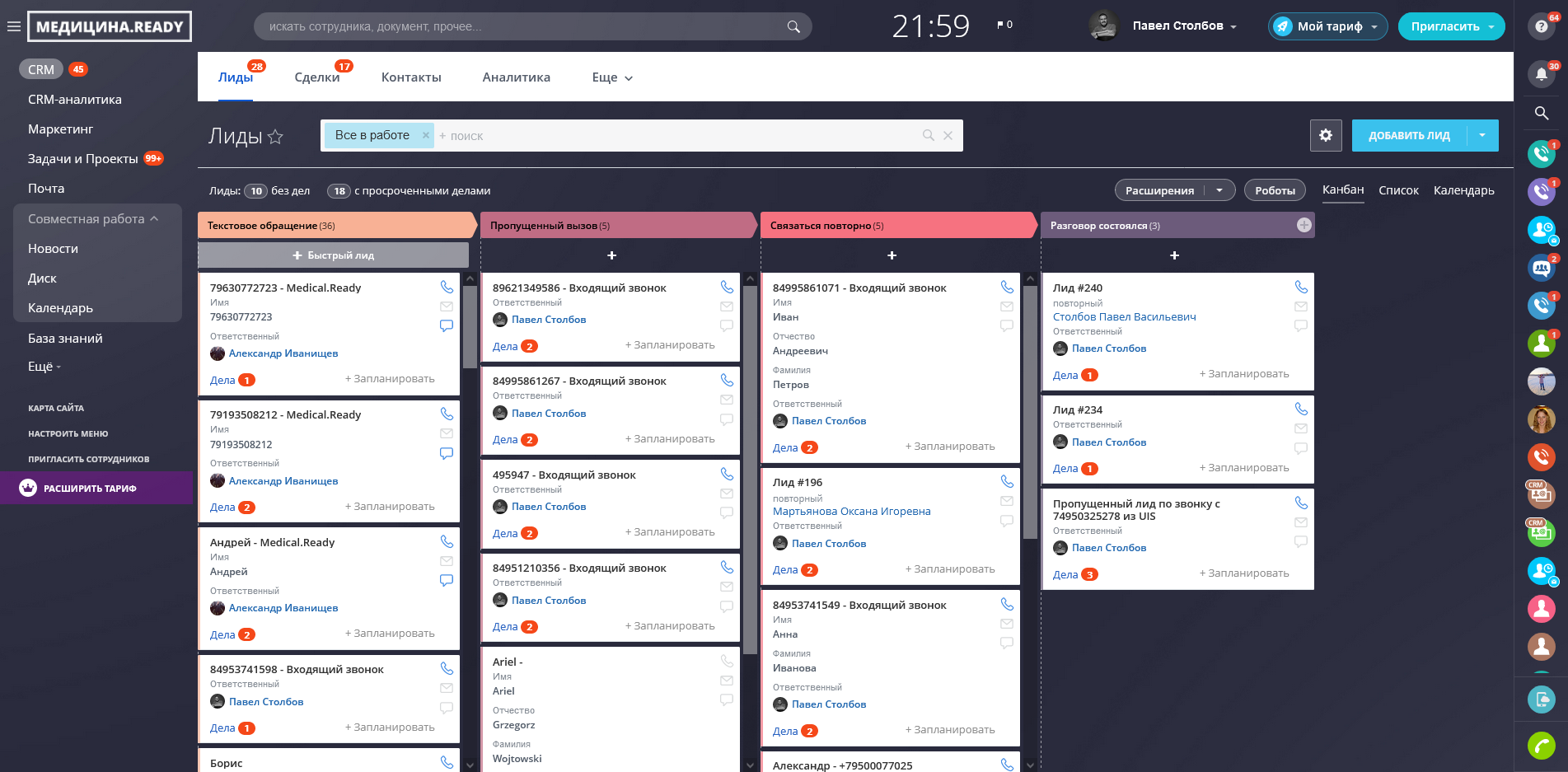Вместе с установкой Готовой CRM "Медицина.Ready" устанавливается следующий пул приложений для расширения функций Битрикс24: