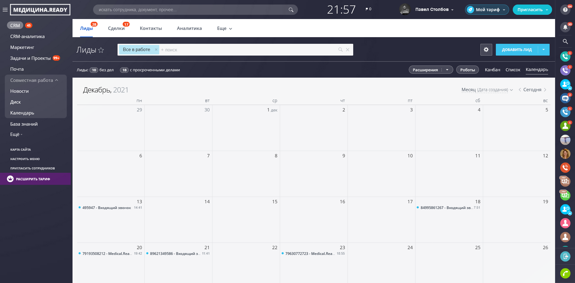 В случае необходимости возможно легкое подключение сайта, сквозной аналитики, 1С Предприятия с REAL-TIME обменом контактами, компаниями, товарами и заказами.
