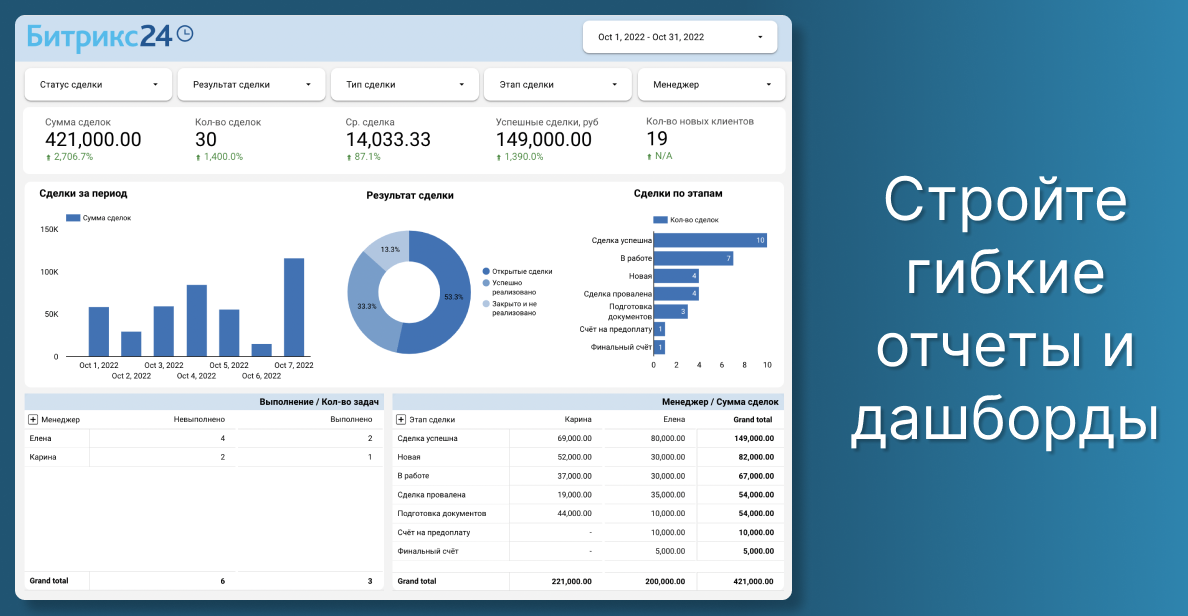 CloudReports — аналитическая платформа для Битрикс24, МоегоСклада, amoCRM, YClients и других облачных сервисов.