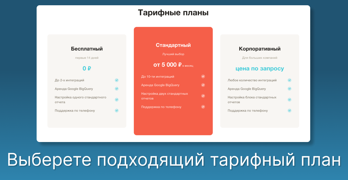 Создавайте отчеты, дашборды и продвинутую аналитику в Google BigQuery или ClickHouse, используя данные из ваших облачных систем.