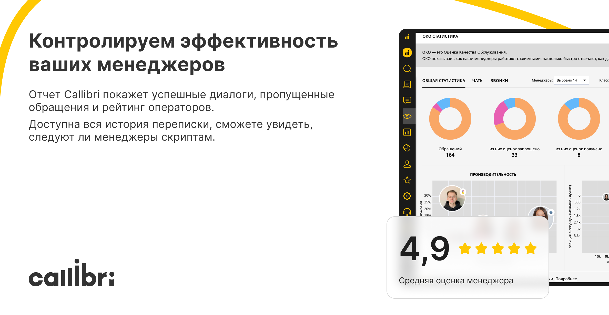 - Управляйте продажами. Отчет Callibri покажет успешные диалоги, пропущенные обращения и рейтинг операторов. Руководитель увидит всю историю переписки и отследит, следуют ли менеджеры скриптам.