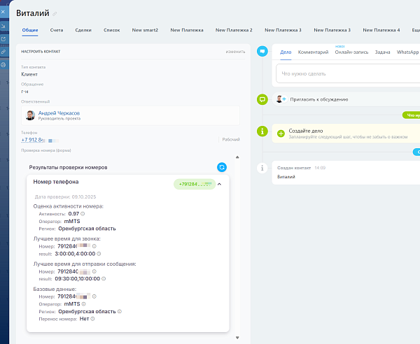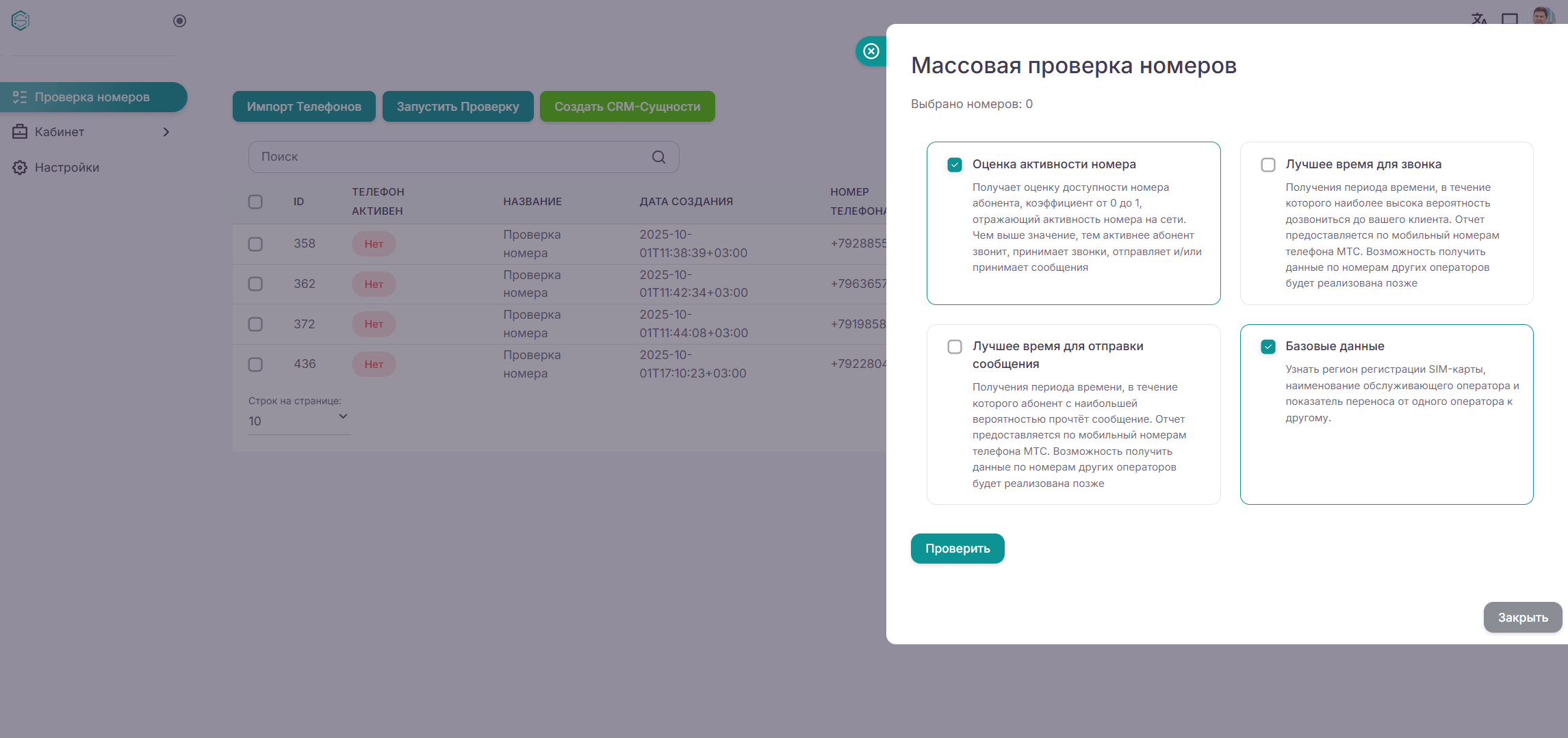 Внедрите автоматическую проверку номеров в CRM при добавление номера в карточку клиента. С этой информацией вы сэкономите на этапе планирования бюджета рассылки или время для обзвона.
