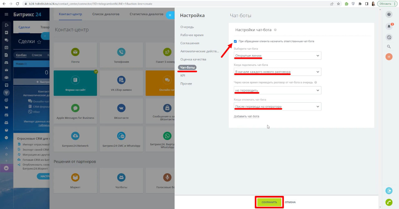 Подробная инструкция о том, как подключить чат-бот https://learn.chatforma.com/bitrix24_connection_bothttps://learn