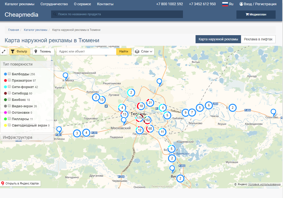 - Рекламным агентствам - закупайте рекламу в разных городах в одном месте. Вся реклама в одной кнопке, удобные инструменты для расчета смет и создания медиапланов. Удобный баинг рекламы с сервисом cheapmedia.