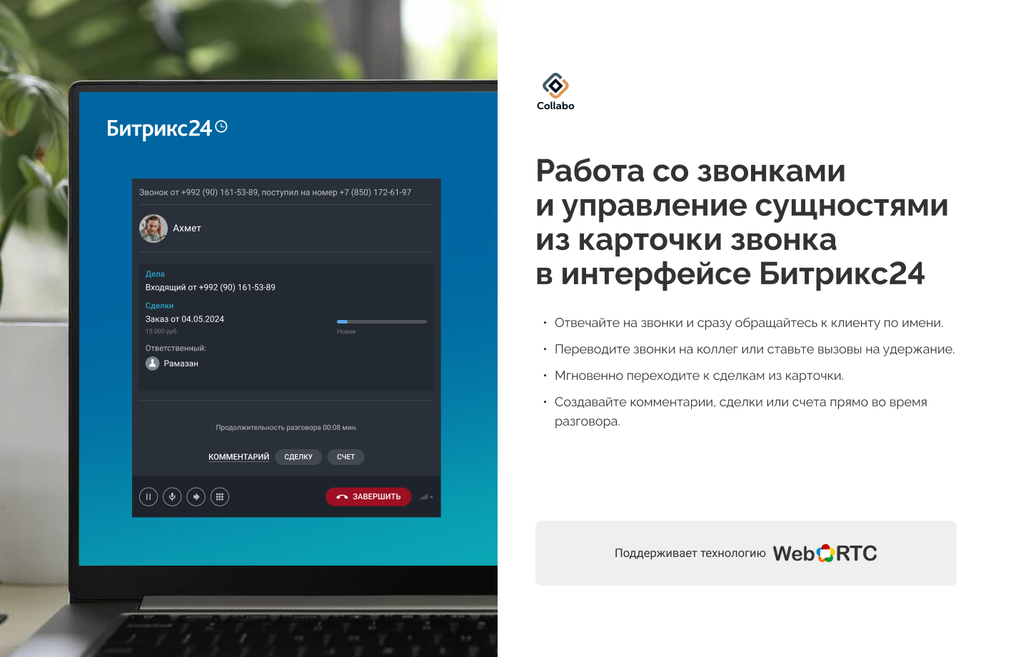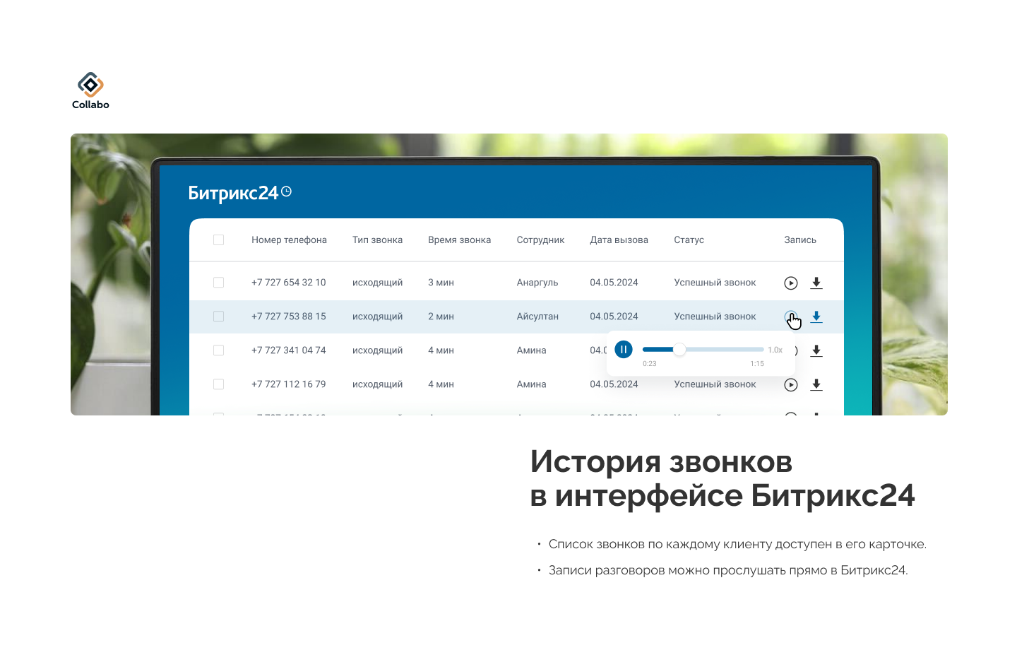 Возможности интеграции виртуальной АТС Collabo и Битрикс24: