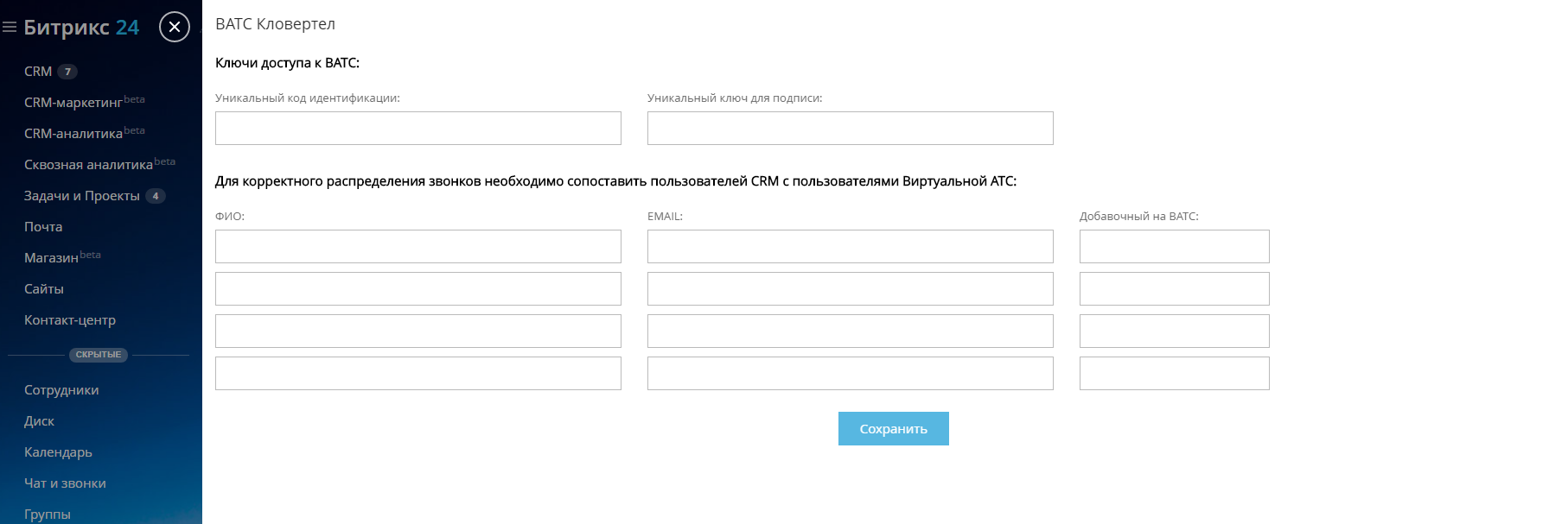 ВАТС КЛОВЕРТЕЛ. ИНТЕГРАЦИЯ С БИТРИКС