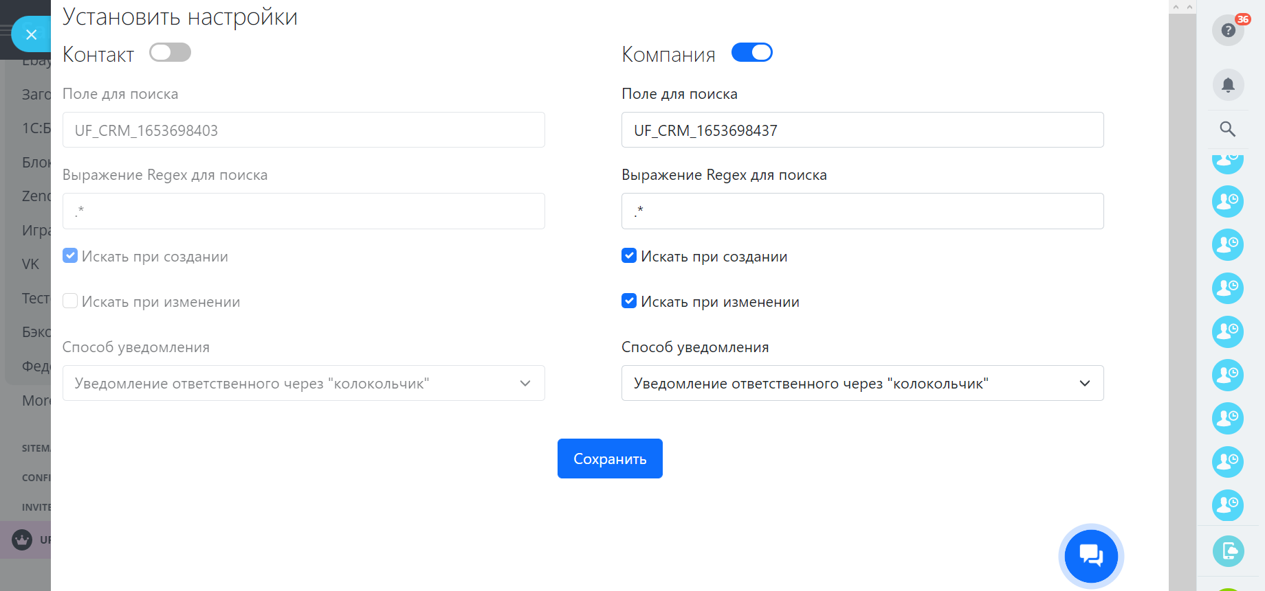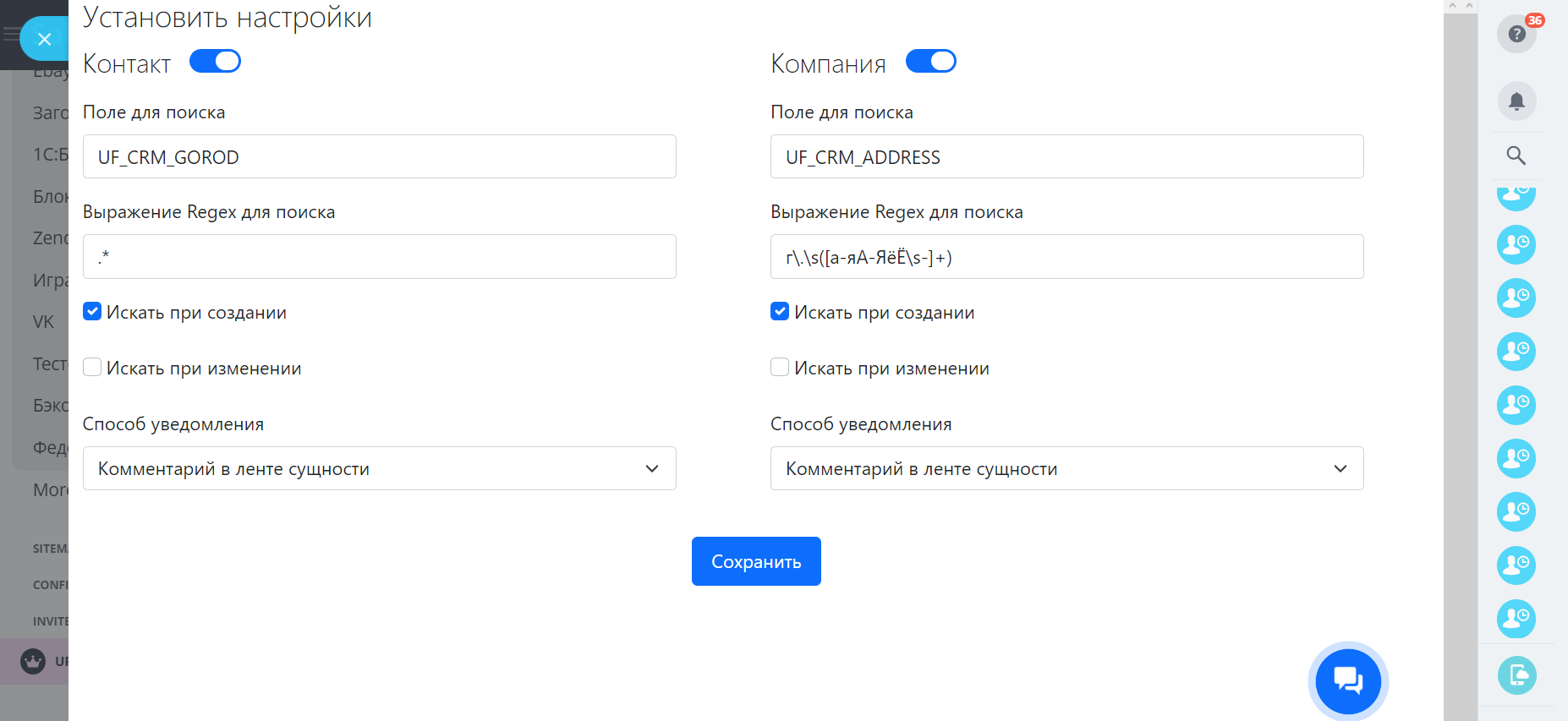 Приложение «Федеральные округа» работает с Контактами и Компаниями.