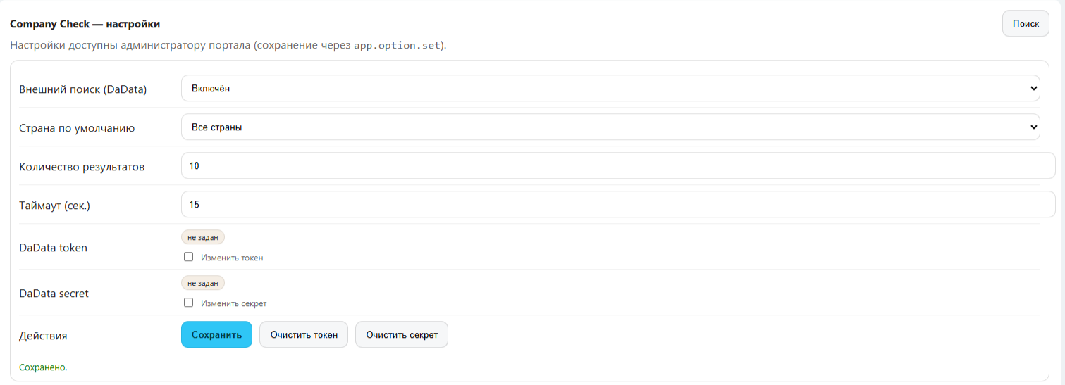 - из внешних источников через DaData (Россия, Казахстан, Беларусь)