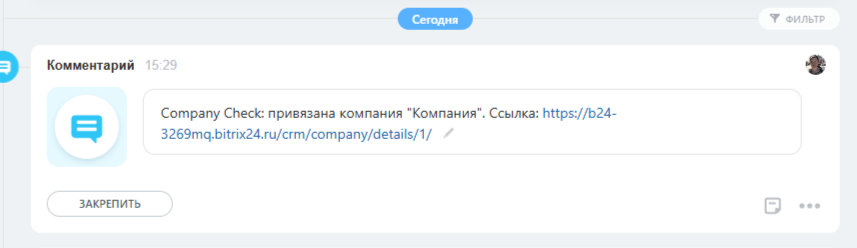- добавляет комментарий в таймлайн (прозрачность действий)