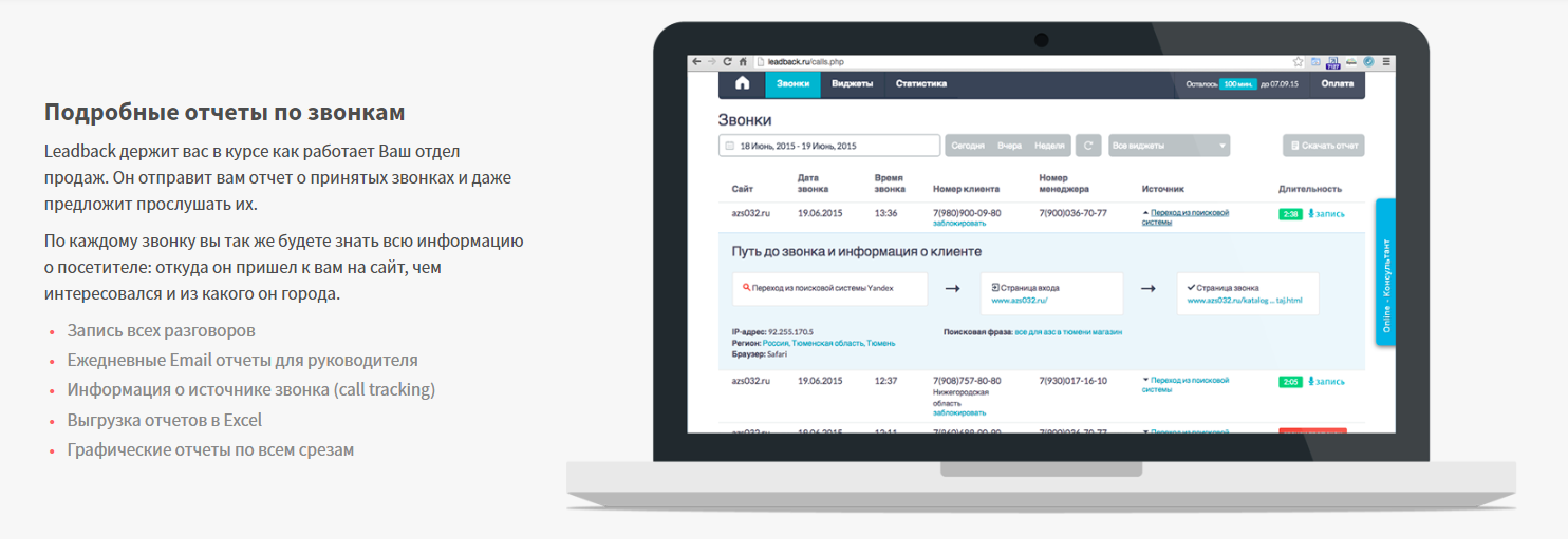 Виджет leadback увеличивает количество звонков с сайта в 2 раза, без дополнительных вложений в рекламу. Если вы сейчас получаете 5 звонков с сайта, то с использованием leadback их будет 10. Больше звонков - больше продаж!